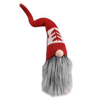 GNOME PLUSH STANDING 22″ RED/WHITE W/ SNOWFLAKE-LIKE PATTERN HAT & FUR BEARD