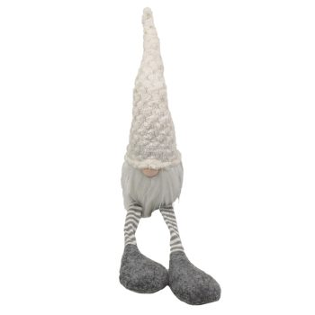 GNOME PLUSH SITTING DANGLING LEGS 23″ RED/WHITE W/ SNOWFLAKE-LIKE PATTERN & FUR BEARD