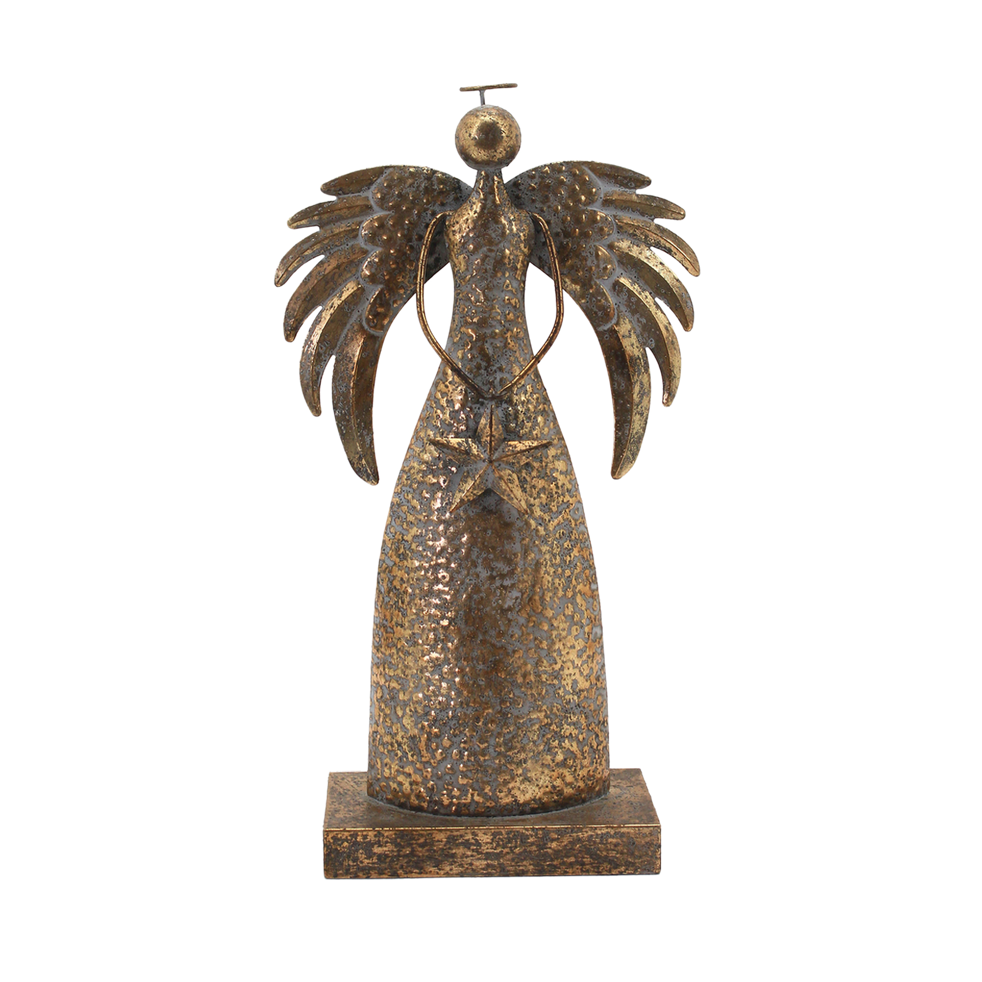 This striking guardian angel figurine embodies a sense of warmth and protection that captures the spirit of the holiday season. Crafted with an aged, metallic finish, its graceful form and intricately detailed wings evoke cherished memories of faith and tradition. This piece stands as a testament to timeless craftsmanship, perfect for enhancing your holiday décor with a nostalgic touch.