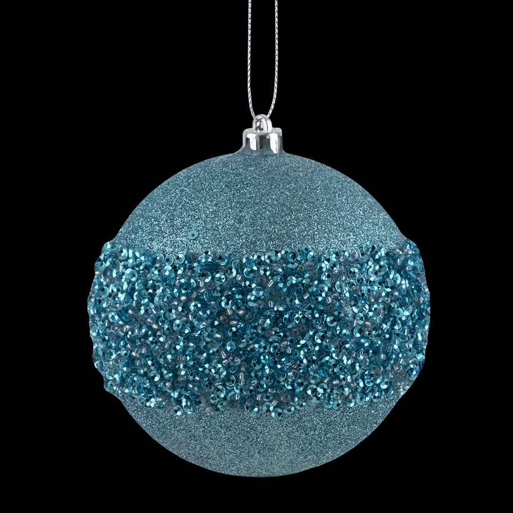 BALL GLITTER W/BEAD BAND 100MM BLUE TEAL