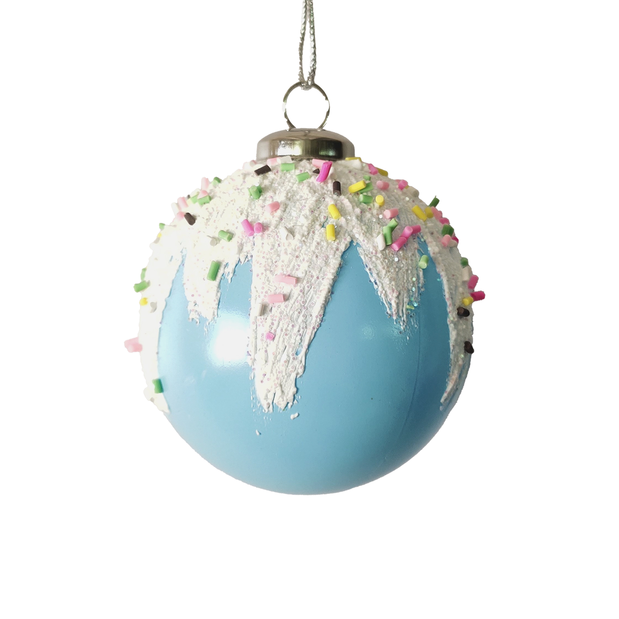 BALL 80MM BLUE W/ GLITTER ICING & RAINBOW SPRINKLES