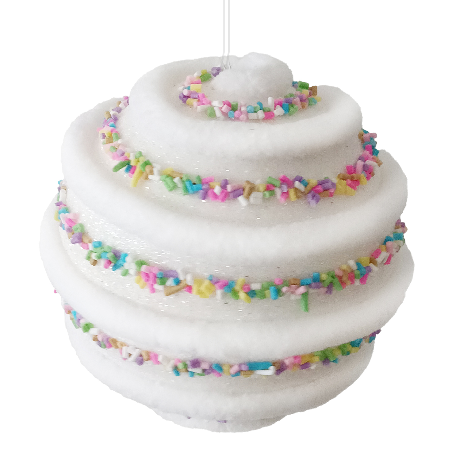 BALL CANDY SWIRL 100MM WHITE W/ MULTI SPRINKLES