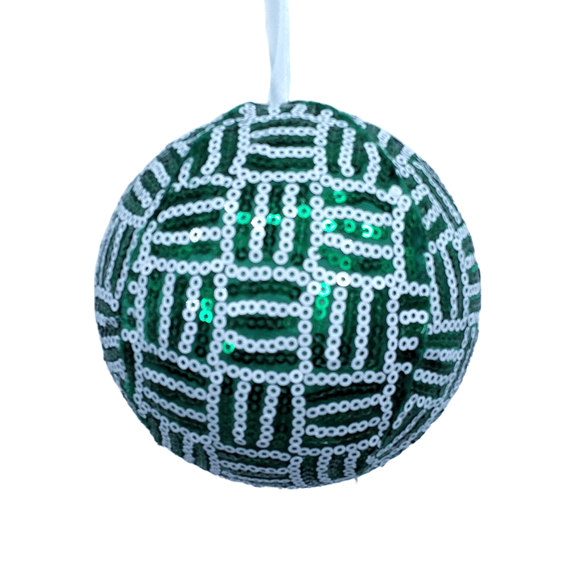This exquisite ornament captures the essence of cherished holiday memories with its gleaming green surface meticulously adorned with shimmering sequins. The intricate pattern evokes the warmth of family gatherings, while the traditional round shape beautifully symbolizes unity and joy during the festive season. This piece is designed to bring a touch of sparkle to your tree, reminiscent of the twinkling lights of yesteryears.