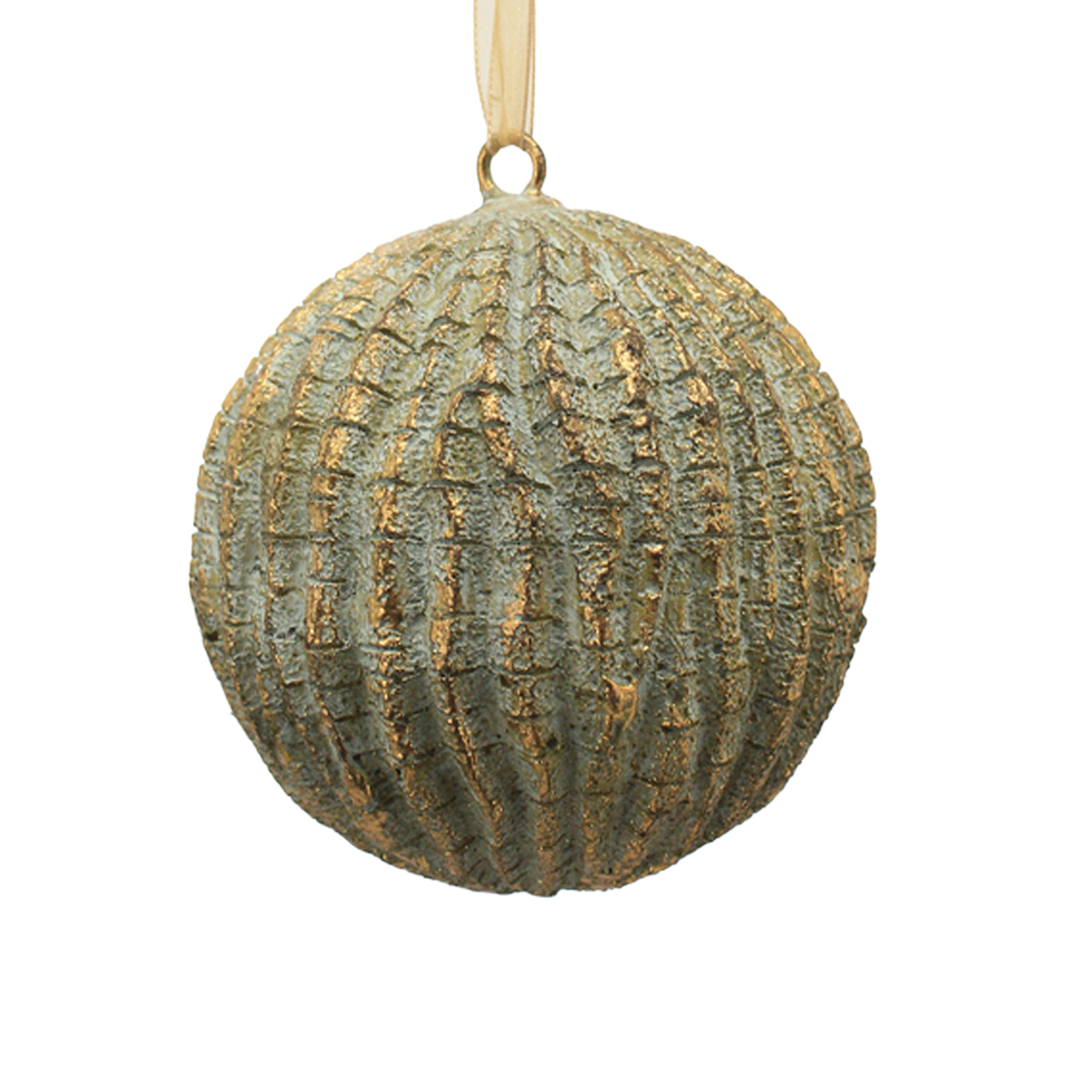 This ornament captures the essence of a winter’s day with its textured surface resembling a frost-kissed pinecone. Handcrafted with care, the soft green color is accented by golden detailing, evoking cherished memories of holidays spent in quiet, snow-covered woods and enhancing the warmth of your holiday gatherings.