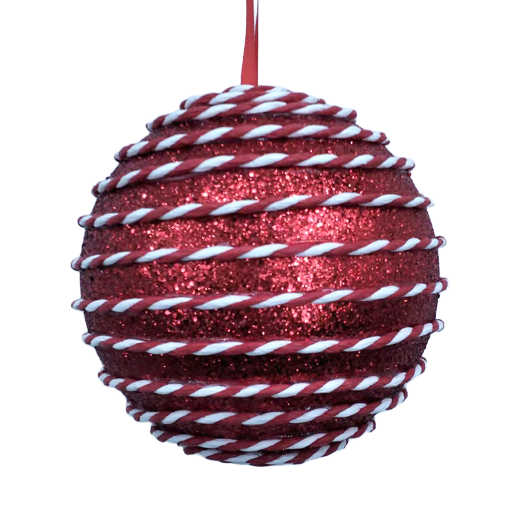 This charming ornament invokes the warmth of holiday gatherings, reminiscent of sweet treats adorning the family tree. Crafted with meticulous attention to detail, the rich red hue is accented by delicate, white spirals, giving it a nostalgic touch that welcomes the spirit of Christmas into any home.