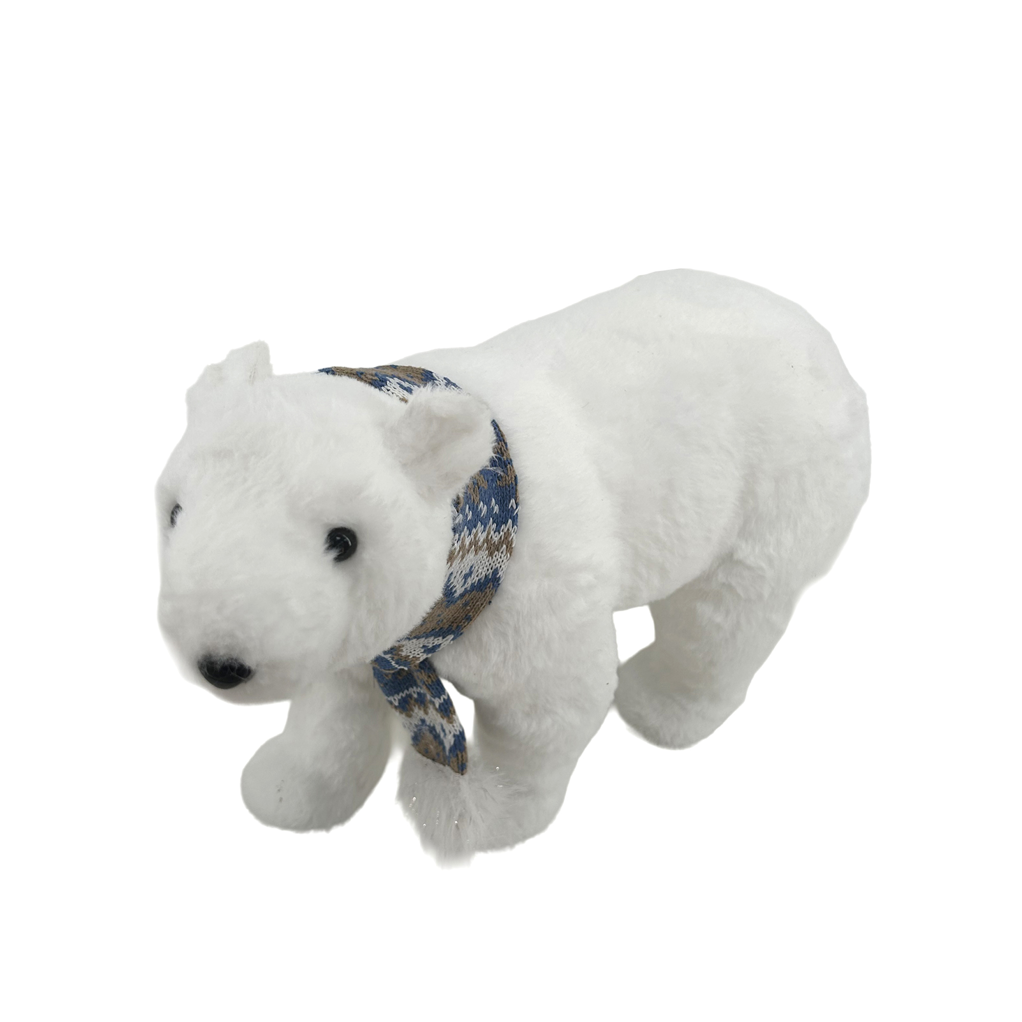 This charming polar bear, adorned with a cozy scarf, brings the serene beauty of winter to your holiday décor. Its soft white coat evokes the purest snowfalls, while the intricate detailing captures a sense of warmth and nostalgia, reminiscent of classic winter scenes shared by families by the fireside.
