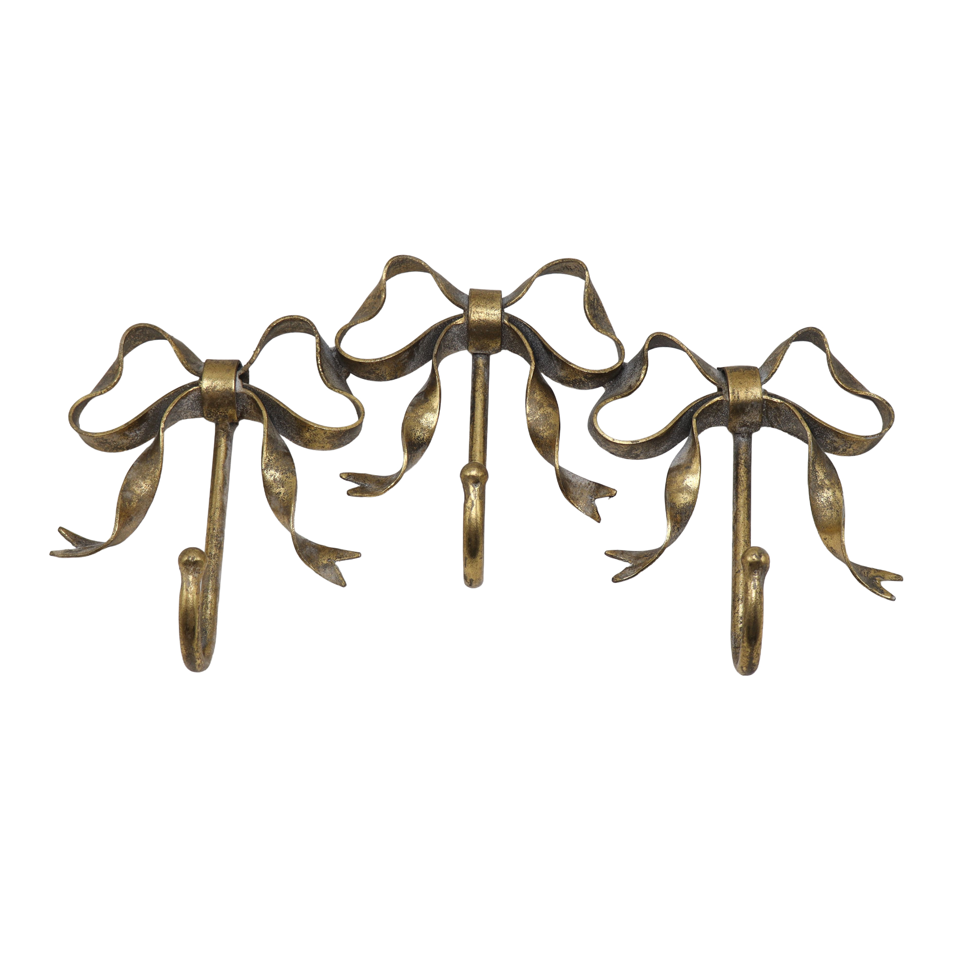 Celebrate the spirit of the season with these charming decorative bow wall hooks, crafted to infuse your home with a warm, holiday spirit. The antique brass finish exudes a timeless elegance, evoking nostalgia for cherished family traditions and gatherings. Each hook is beautifully shaped like a bow, offering both style and functionality for hanging festive decorations or essentials throughout your home.