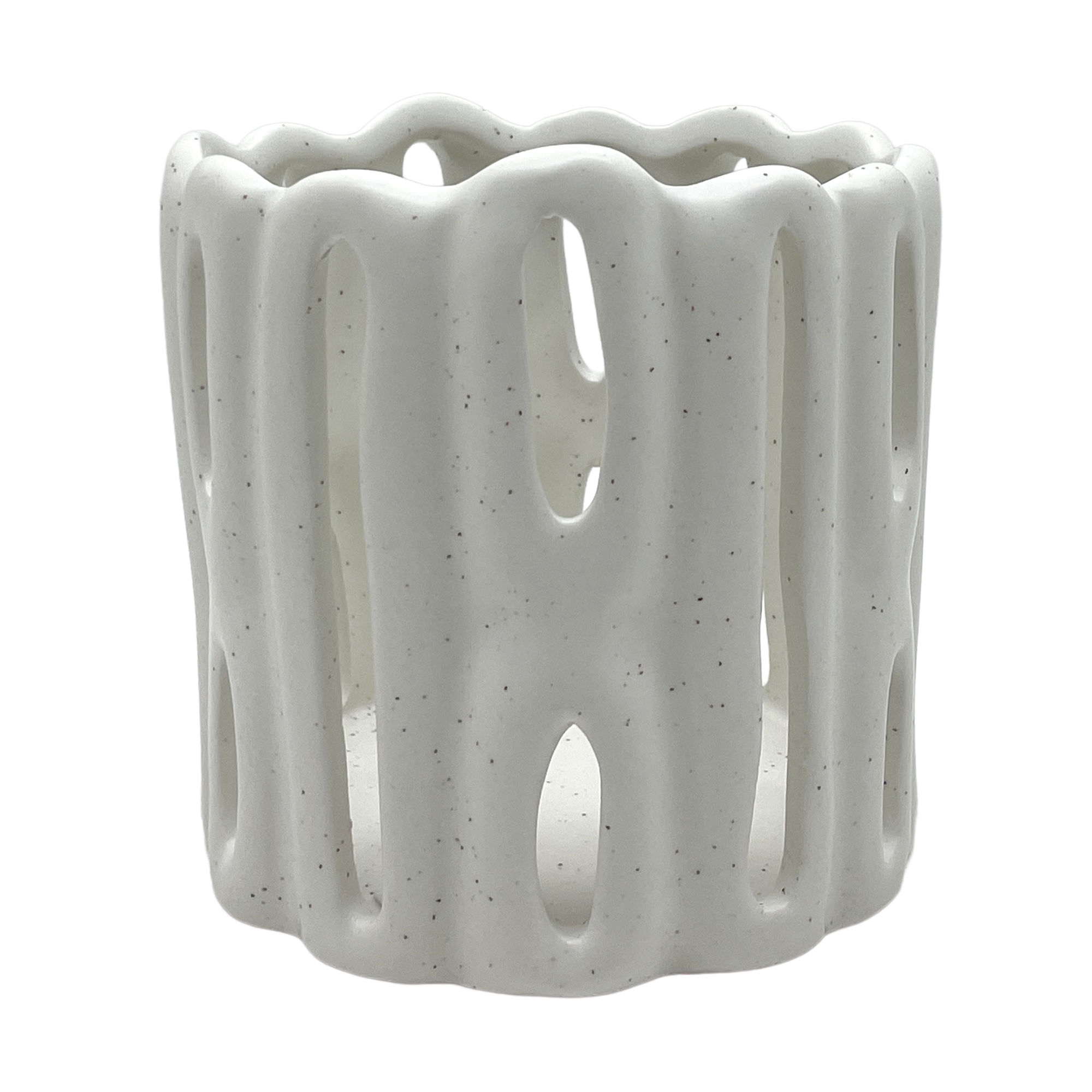 CANDLE LANTERN CERAMIC 5″X5″H NATURAL ECRU FINISH