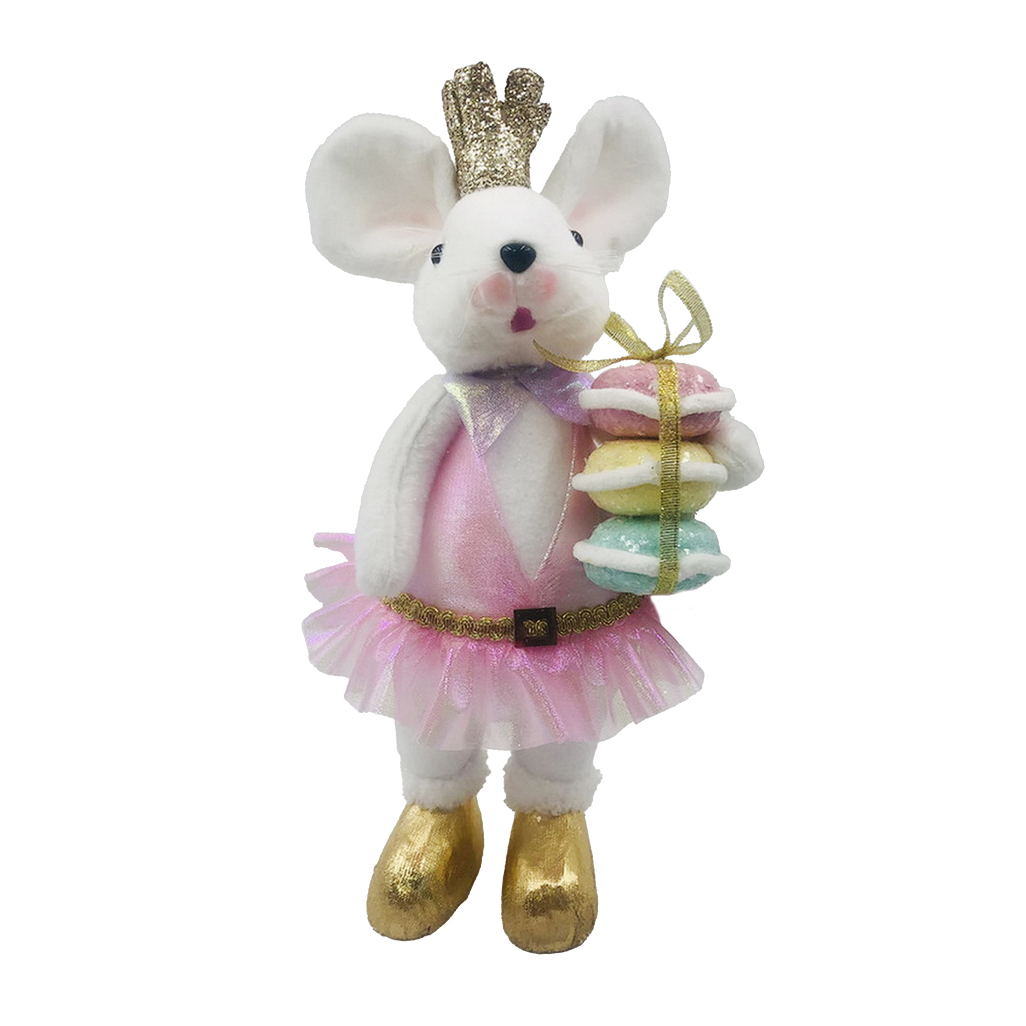 CANDY MOUSE PRINCESS 14″ WHITE/MULTI STANDING HOLDING A MACAROON GLITTER