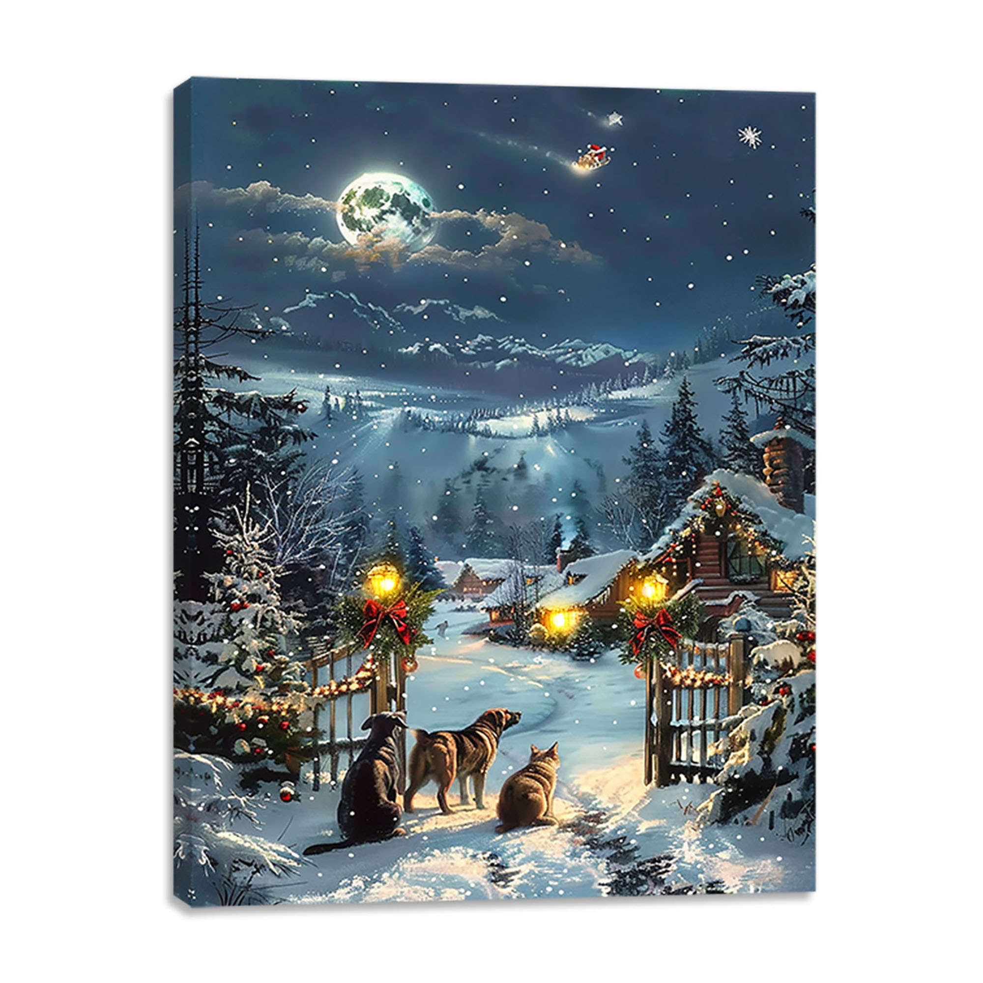 Our CF collection of wall art is a stylish way to spruce up your space! This graphic art is printed on wrapped canvas, lending some Christmas gallery-worthy appeal to your abode. Equipped with the newest LED technology, these lighted prints last year after year with very little maintenance. Bring a cheerful atmosphere to your holiday season!