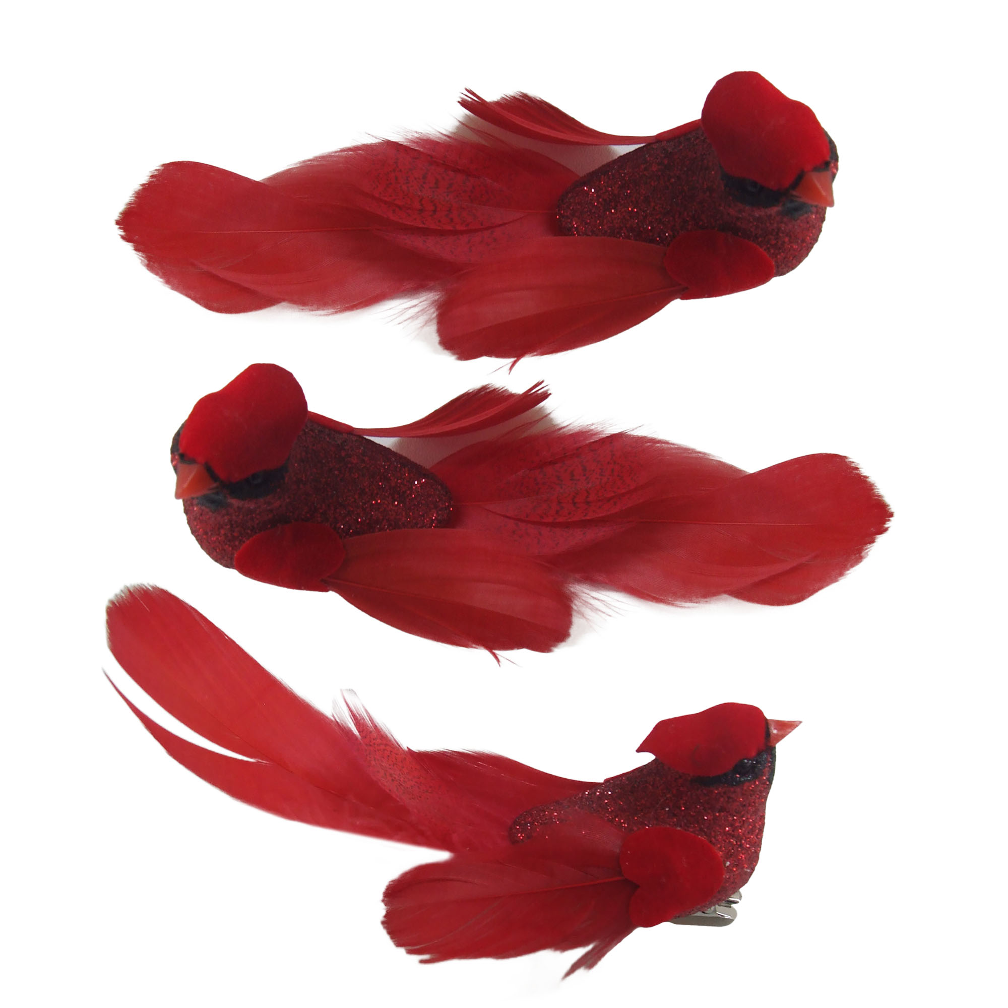 CARDINAL RED FEATHER/FABRIC 6″ 3 STYLES W/ GLITTER & CLIP