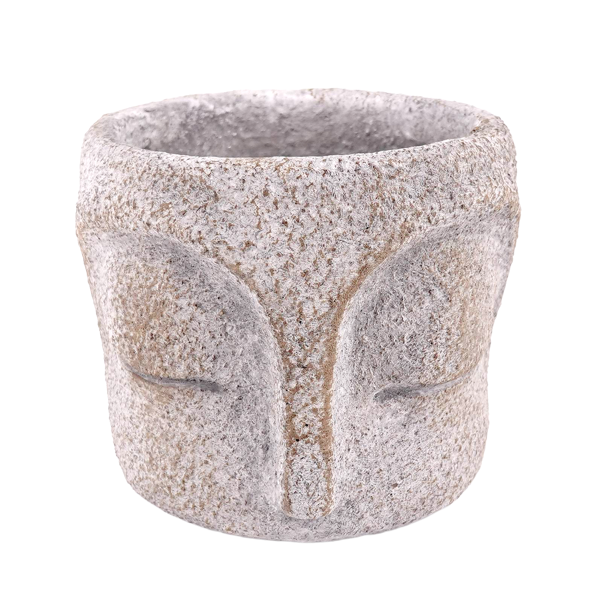 CEMENT POT 5″X4″H FACE DESIGN GRAY STONE FINISH