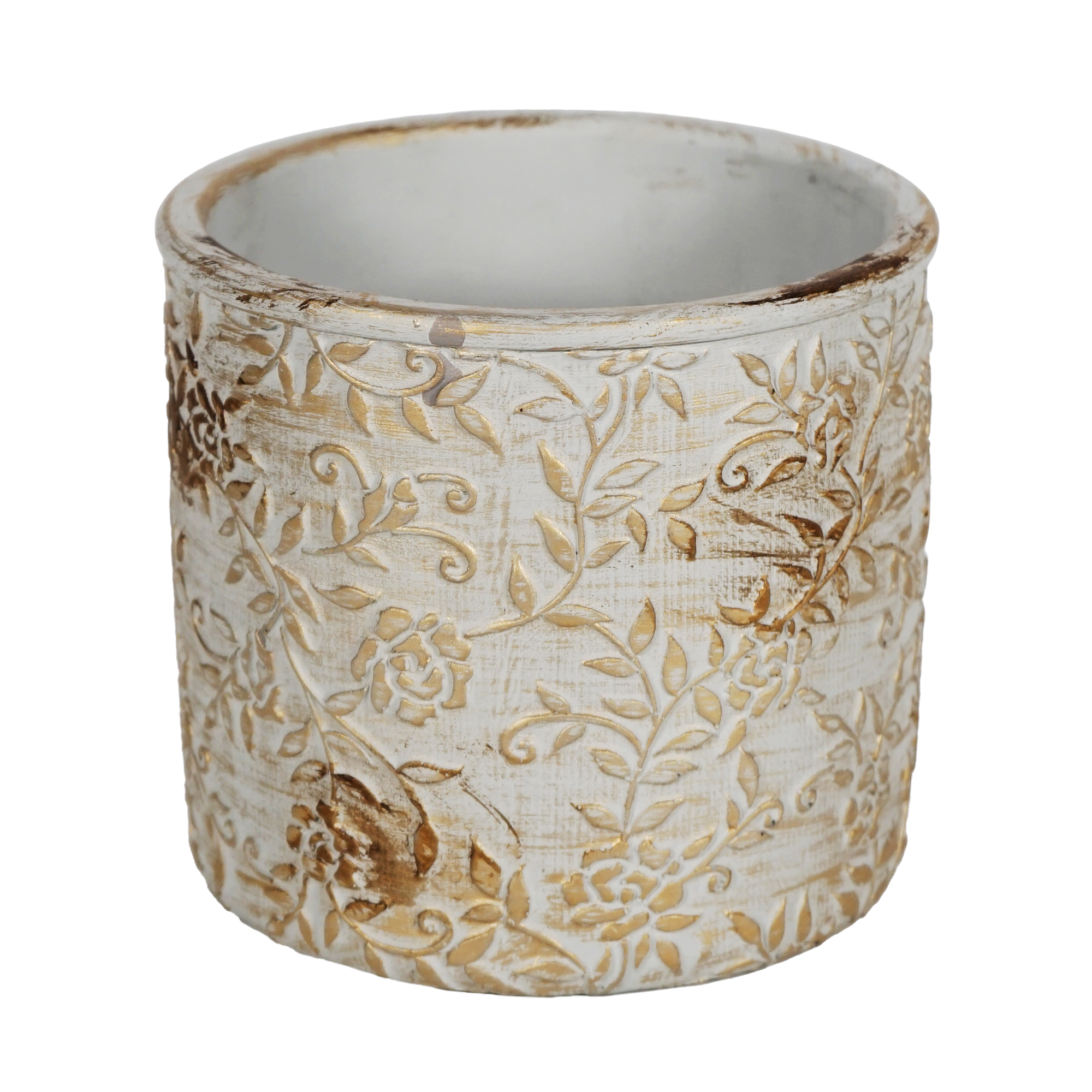 CEMENT POT 6″X5.5″H LEAF PATTERN CREAM/BROWN