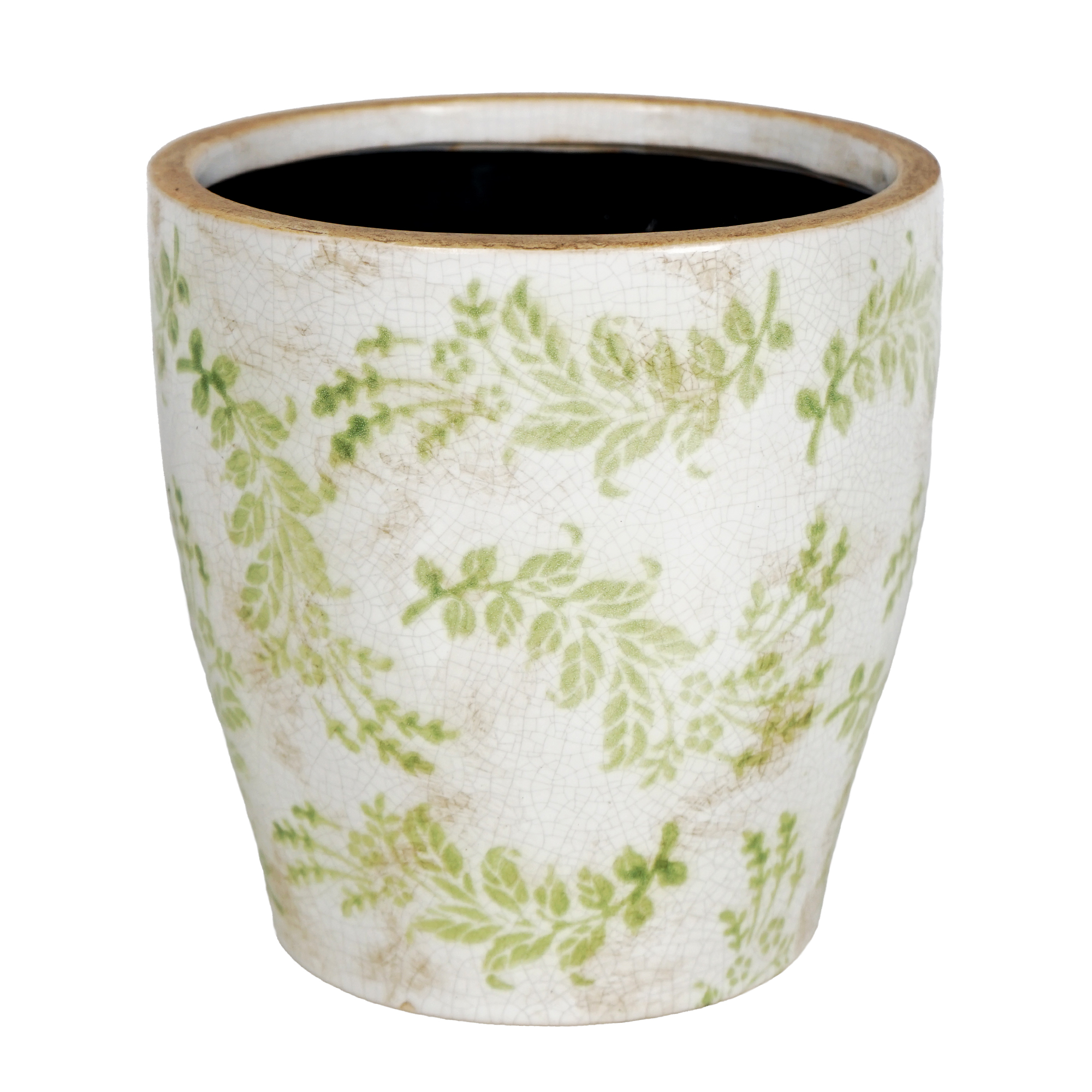 CEMENT POT 7.5″X8″ LEAF PATTERN CREAM/GREEN