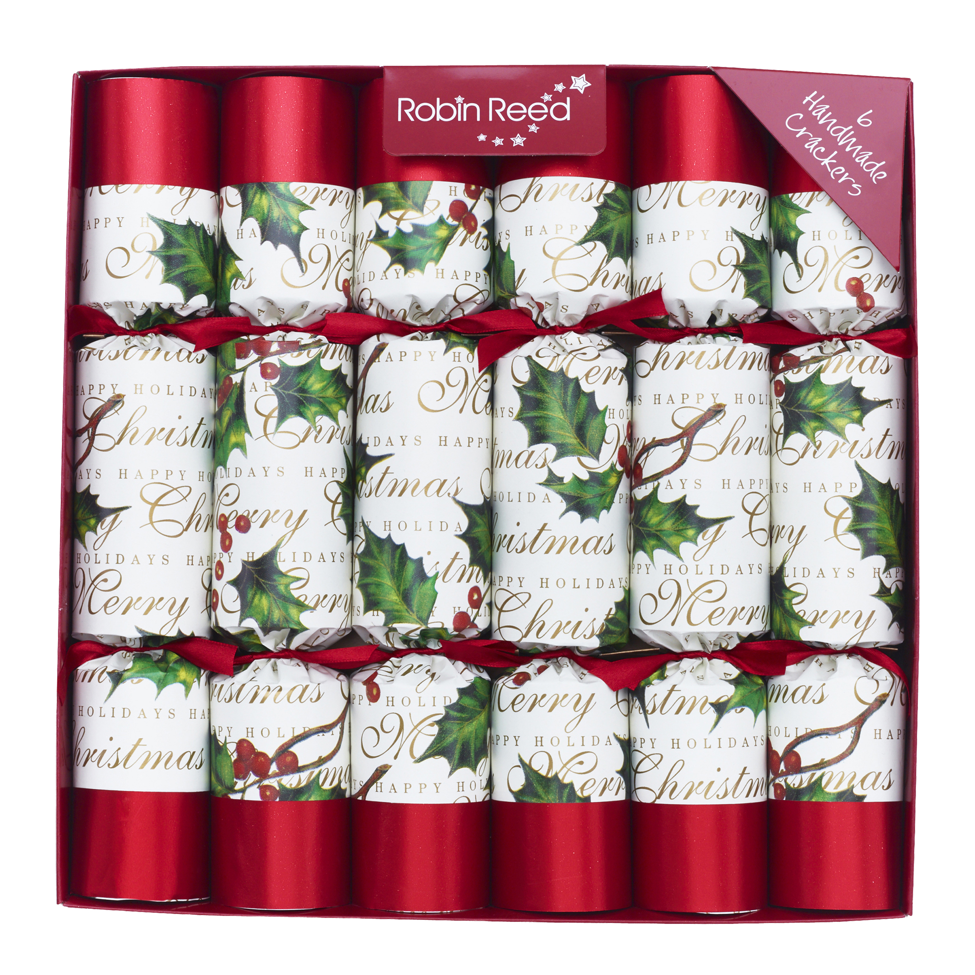 • Crafted from premium paper with a glossy finish, featuring festive holly and gold lettering.