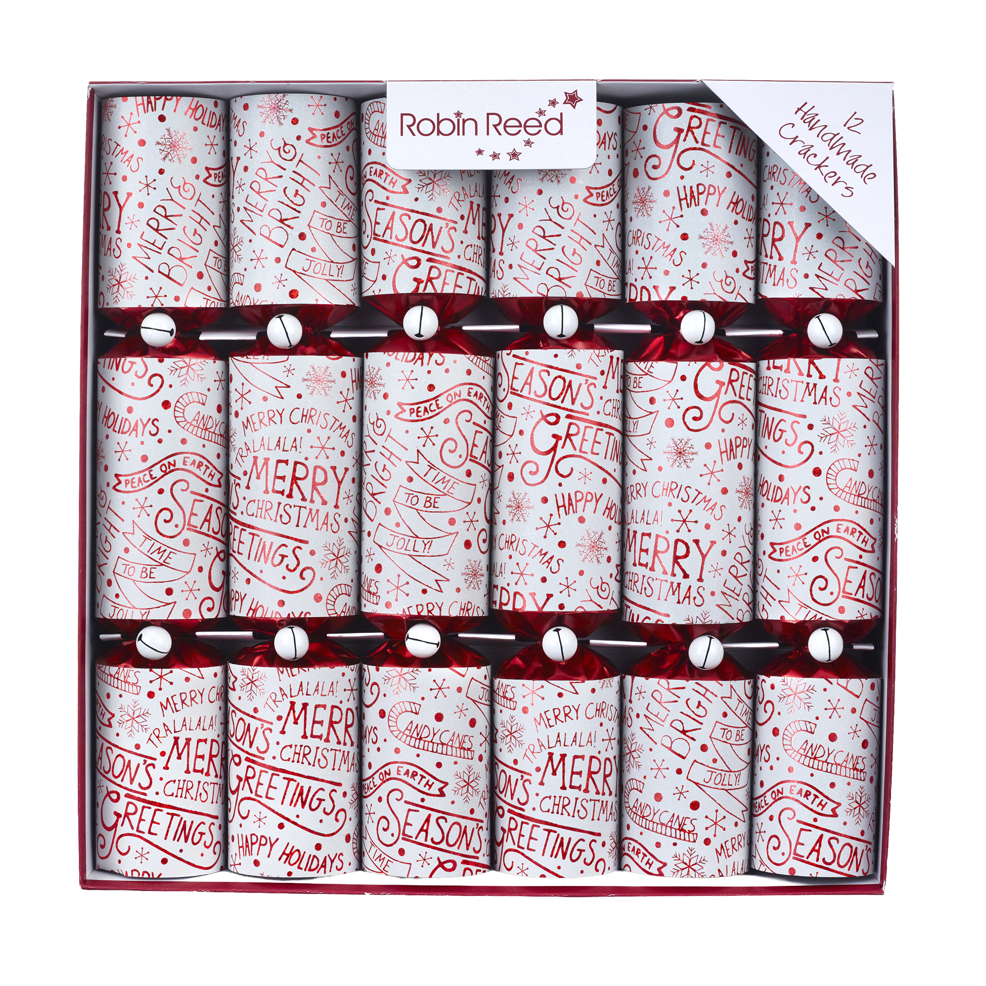 Delight in the charming tradition of holiday gatherings with this set of Christmas crackers, beautifully adorned in festive red and white hues. Each cracker is carefully crafted, presenting whimsical messages of cheer and joy, evoking cherished memories of family celebrations. As you pull these festive treasures, youll be greeted with surprises that spark laughter and festive spirit around your dinner table.