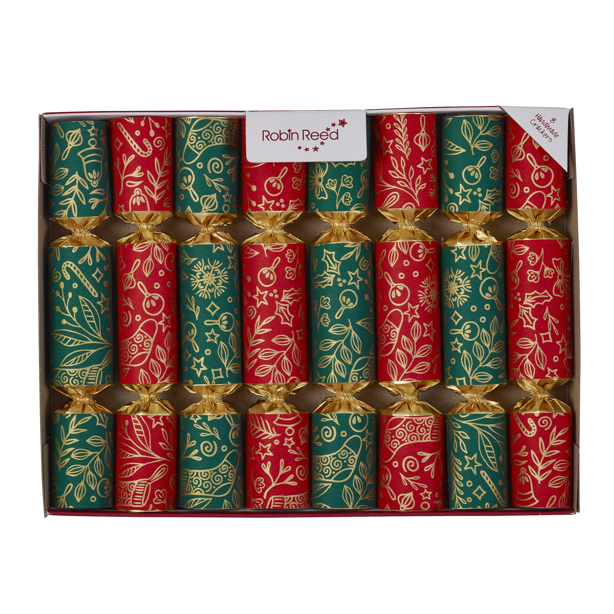 Delight in the spirit of the season with this charming collection of Christmas crackers, designed to bring joy to your holiday celebrations. Each cracker is adorned with intricate festive patterns in vibrant red and green hues, evoking a sense of nostalgia for cherished family gatherings. Crafted with meticulous care, they add a touch of tradition to your festivity, inviting laughter and togetherness around the table.