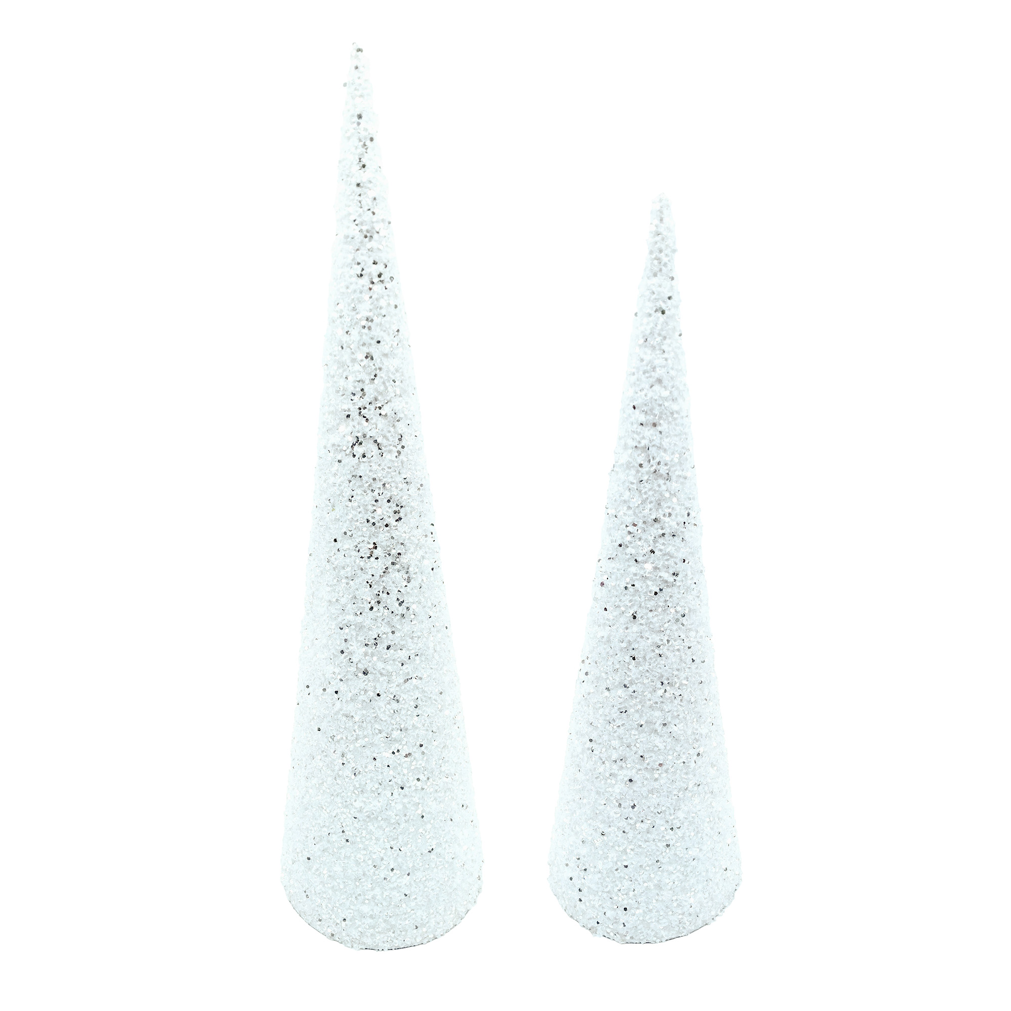 CONE TREE 24″ |18″ WHITE W/ ICED GLITTER & SEQUINS