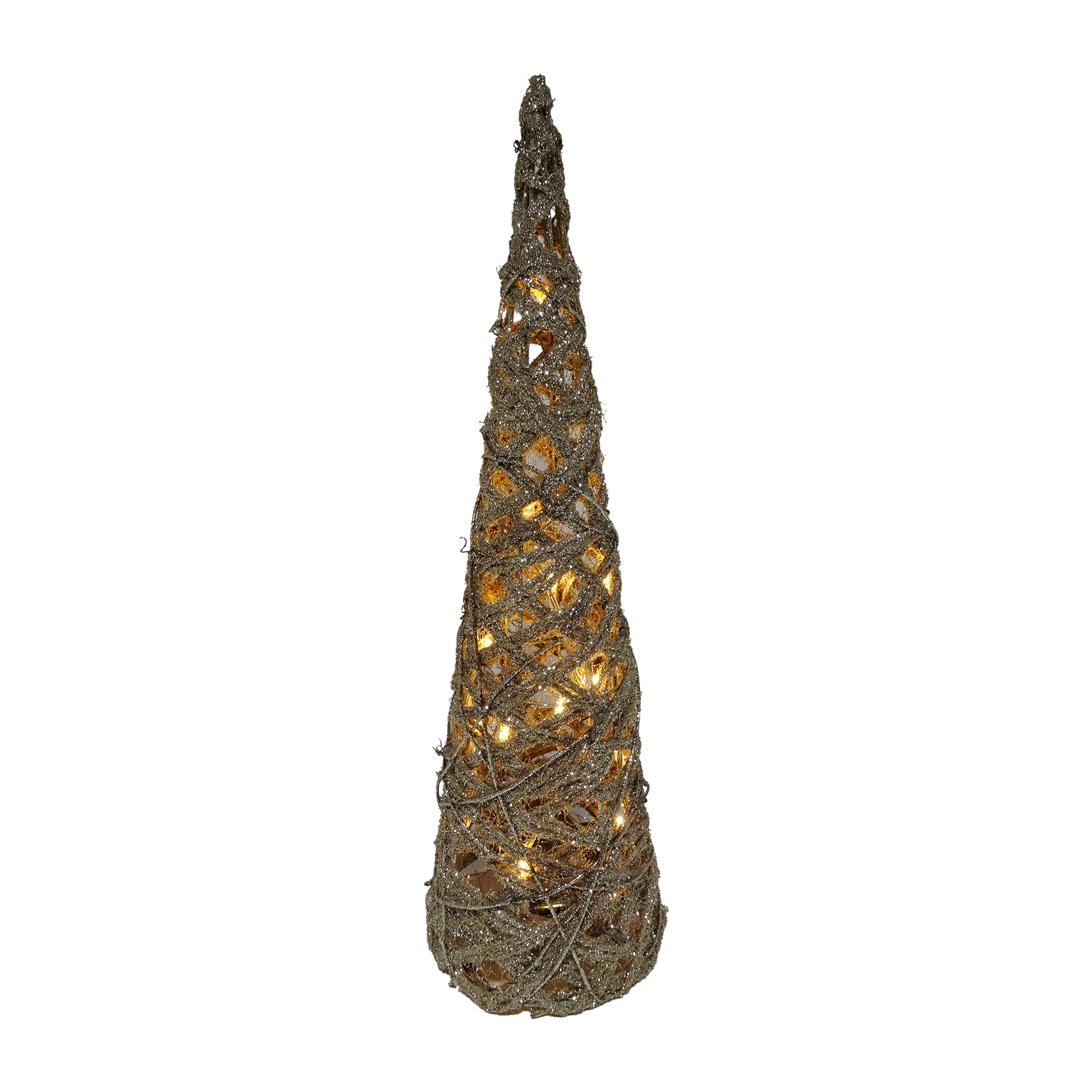 CONE TREE RATTAN/HEMP ROPE FROSTED 16″ W/ GOLD GLITTER, 15-LED LIGHT B/O