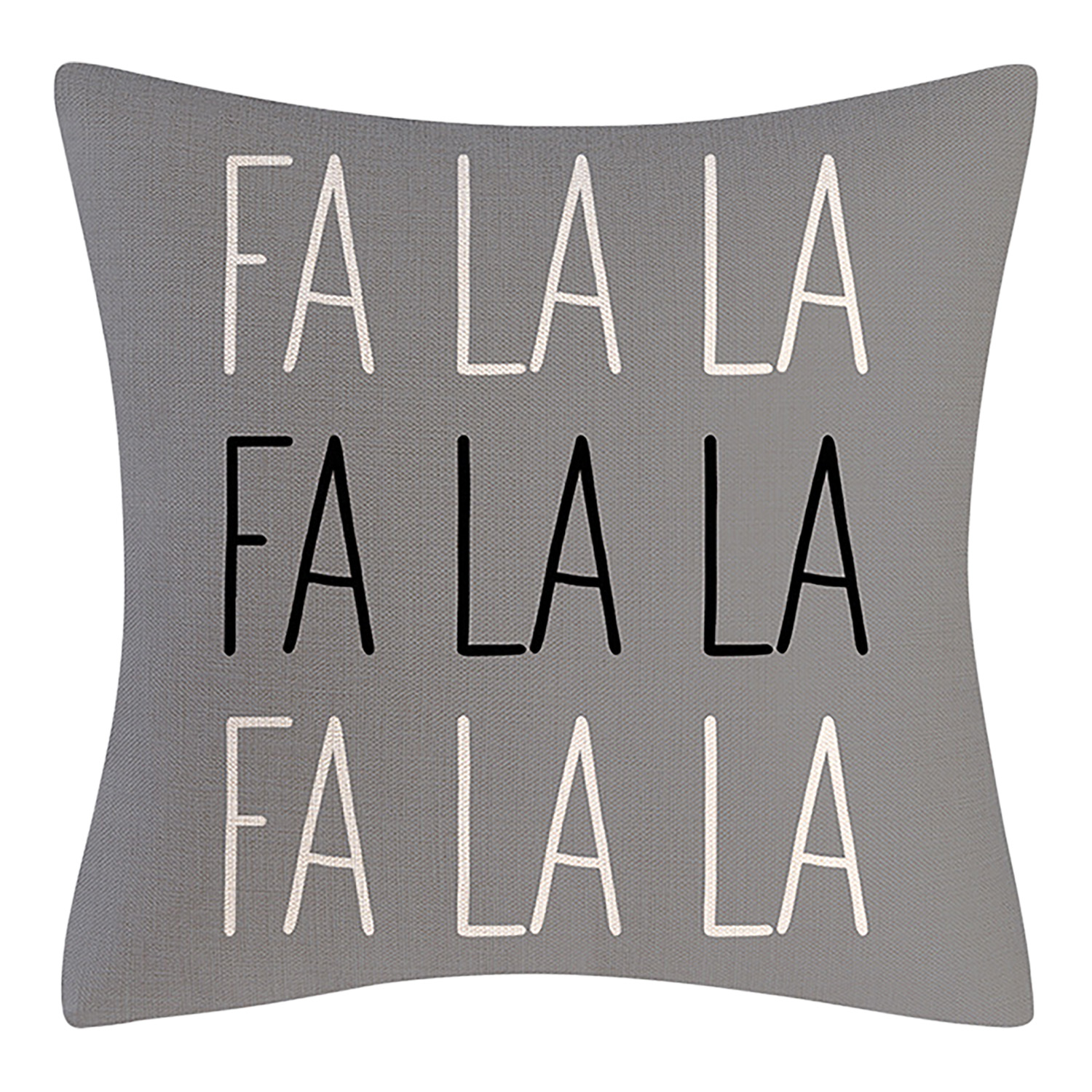 CUSHION DECORATIVE 16″x16″ “FA LA LA” GRAY/WHITE/BLACK