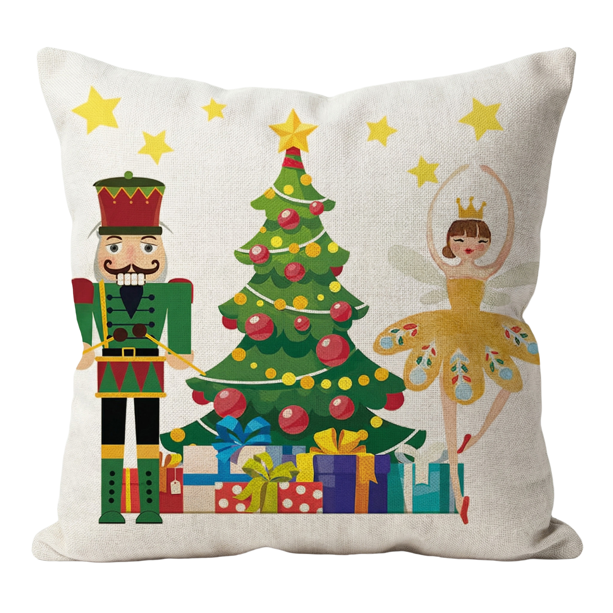 CUSHION DECORATIVE 16″X16″ CHRISTMAS TREE, NUTCRACKER AND DANCER FIGURINES