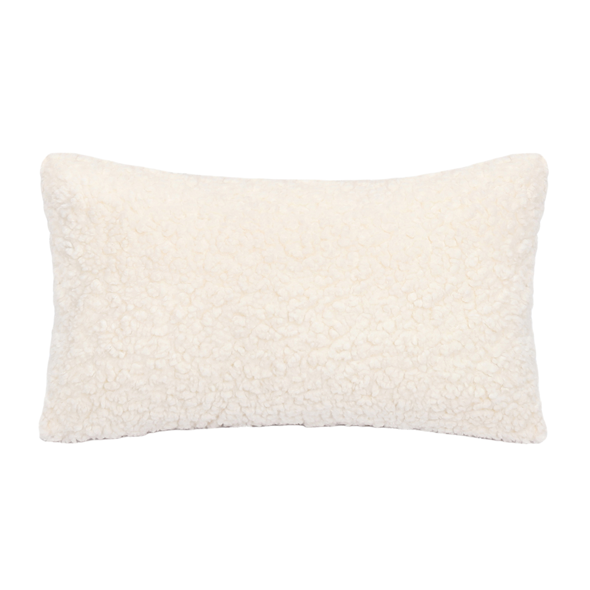 CUSHION DECORATIVE FAUX FUR CURLY 20″X12″ WHITE POLYESTER 300G FILLING