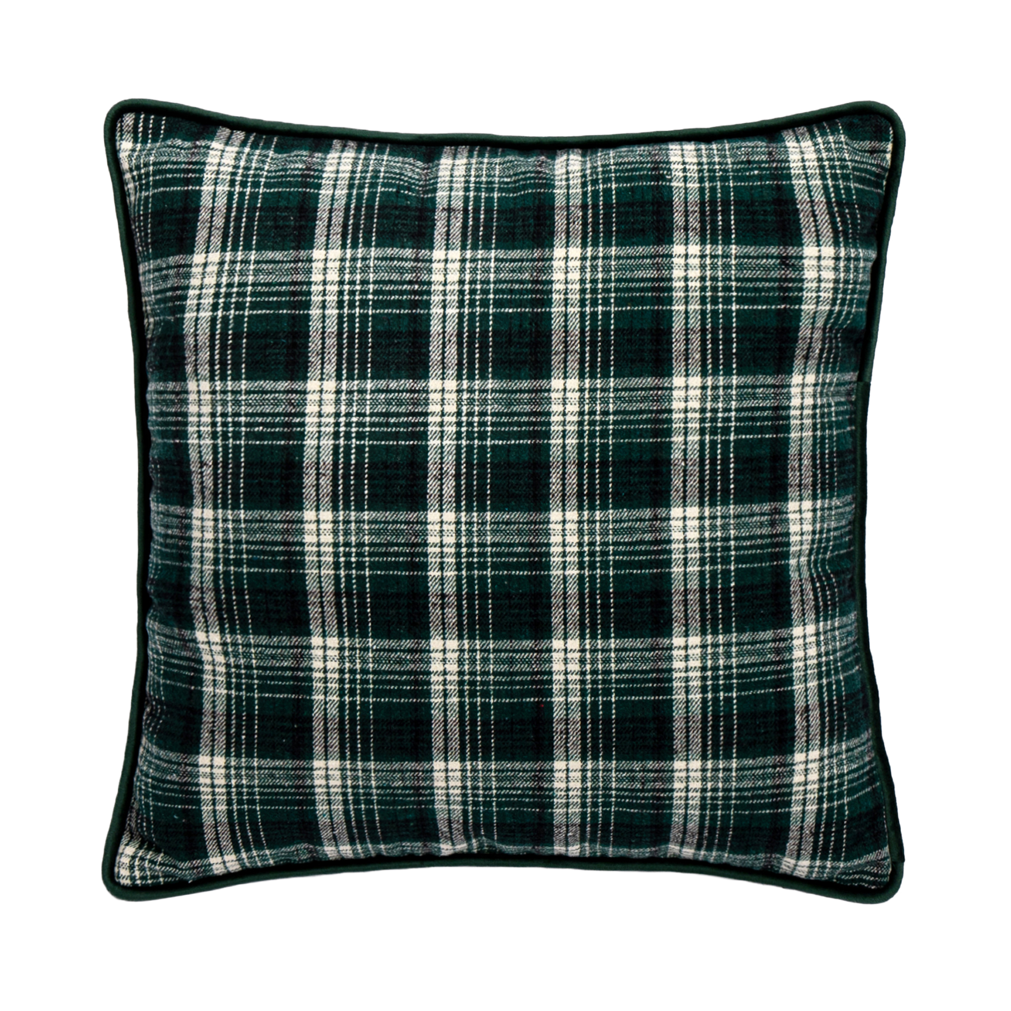 CUSHION DECORATIVE PLAID WITH VELVET 18″X18″ GREEN POLYESTER/COTTON 400G FILLING