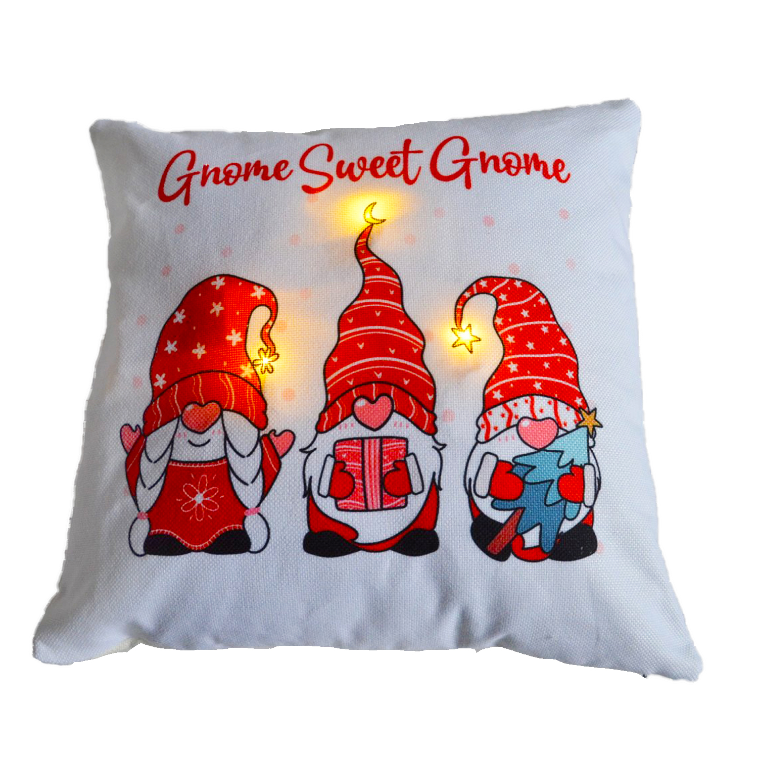 CUSHION LIGHTED 16″X16″ 3 LED+6/18 TIMER “GNOME SWEET GNOME” WHITE/ RED