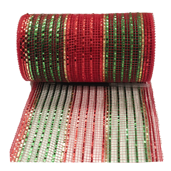 DECOR MESH 6”x10 YDS. RED EMERALD W/ RED, EMERALD & CHAMAPAGNE METALLIC