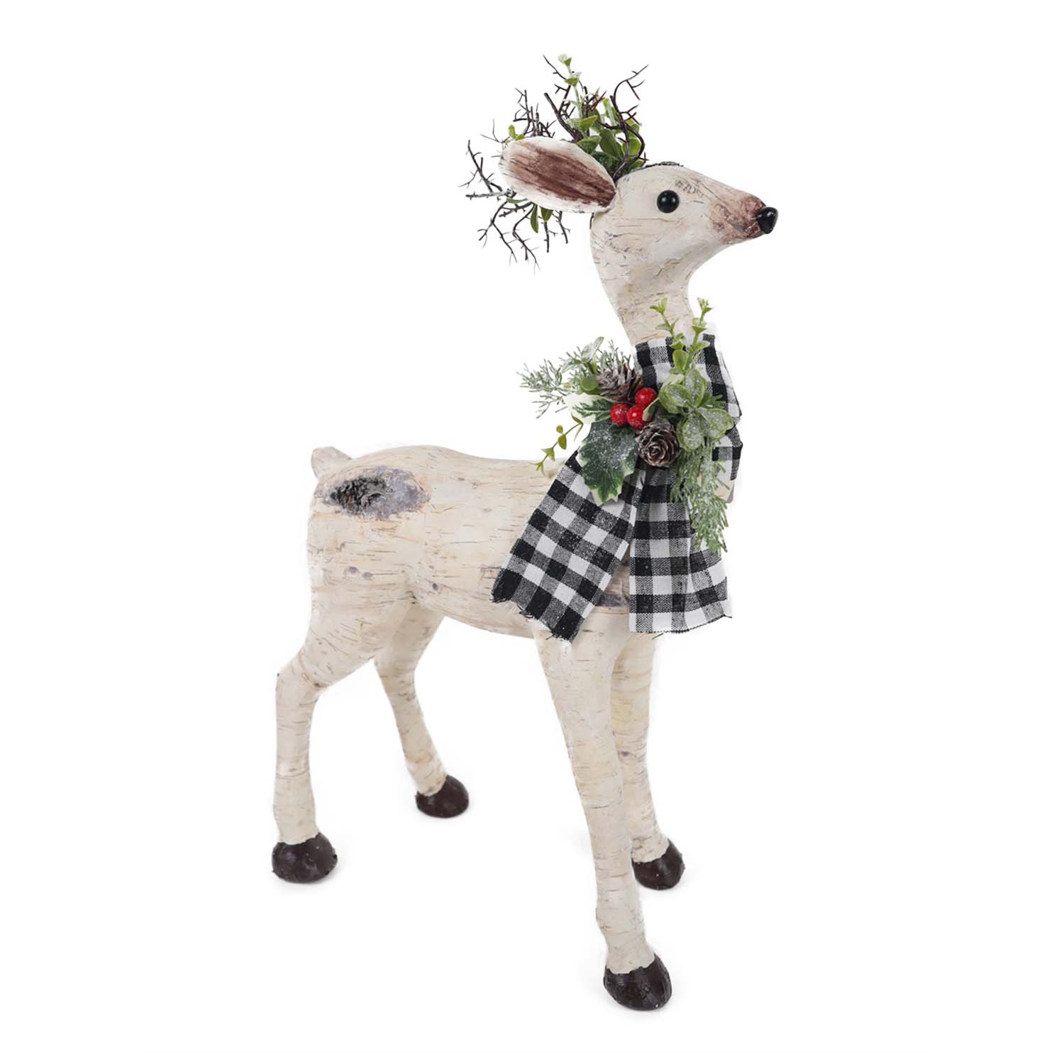 REINDEER STANDING BIRCH LOOK 13″X5″X20″ BLACK/ WHITE PLAID SCARF