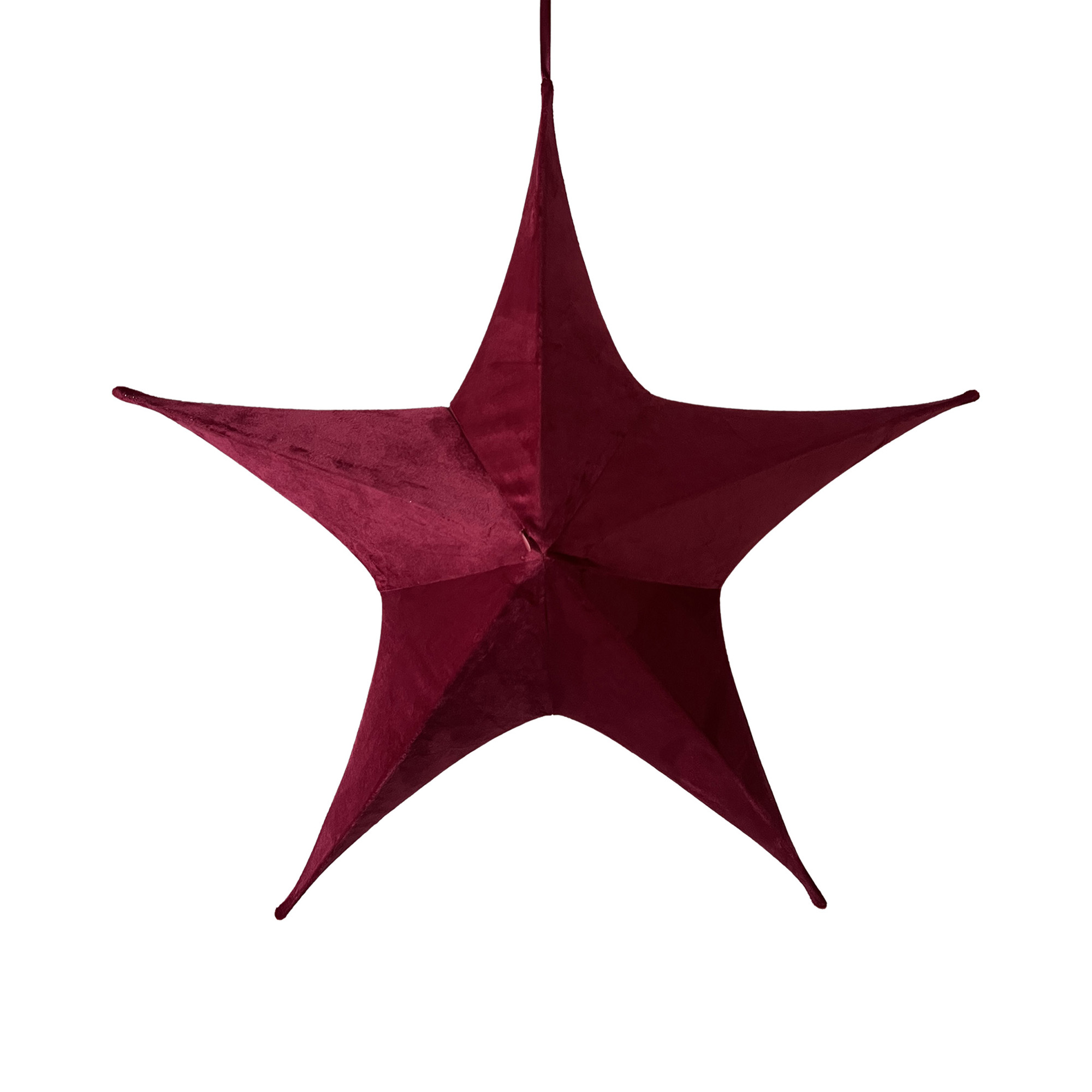 This exquisite ornament embodies holiday spirit with its rich, deep burgundy hue and soft velvet texture, evoking memories of cherished family gatherings and festive celebrations. Crafted with care, this star is designed to hang gracefully, adding a touch of elegance to your holiday décor and reminding us of the timeless joy of the season.