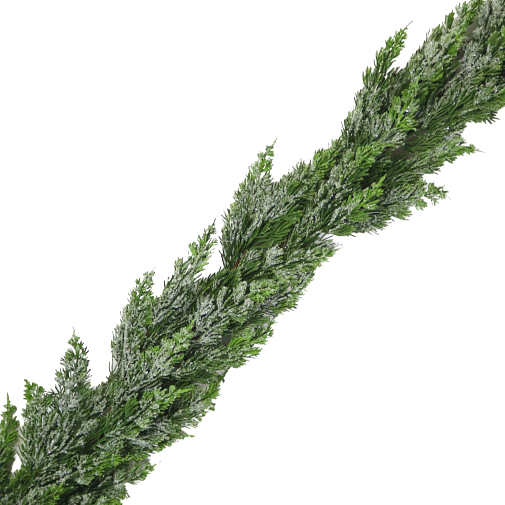 This exquisite garland is crafted from soft, lifelike faux pine tips, which evoke the feeling of a rustic winter woodland. Its rich green hues and gently dusted white accents create a charming, wintry appeal, perfect for adorning your home during the festive season.