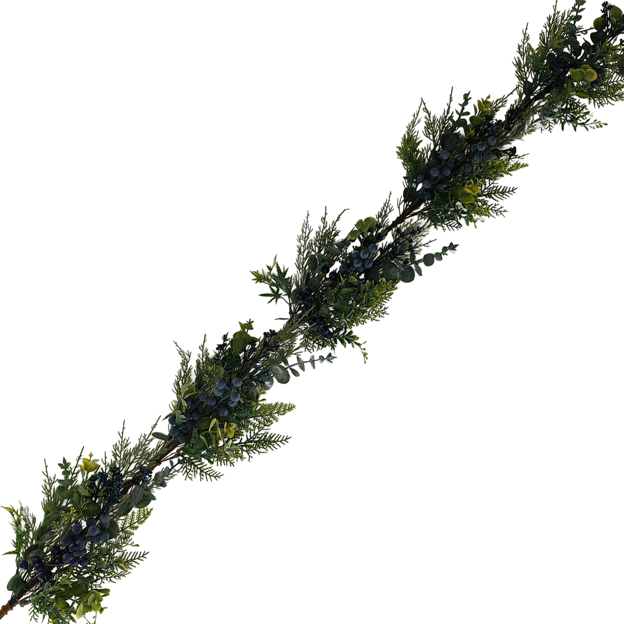 GARLAND CEDAR/EUCALYPTUS W/BLUE BERRIES 5′ GREEN/BLUE
