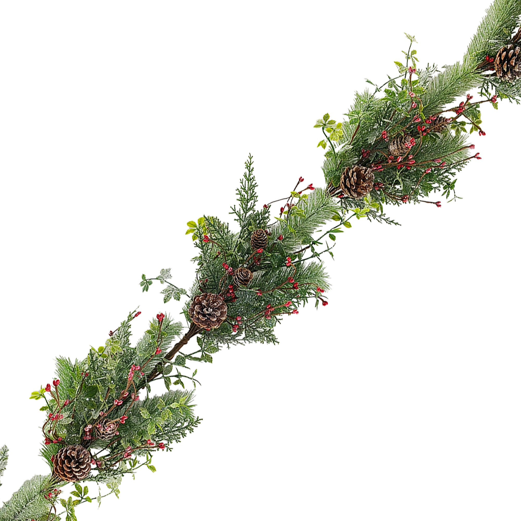 GARLAND MIXED PINE & VINES GREEN/RED 5’FROSTED W/ PINE CONE & BERRY