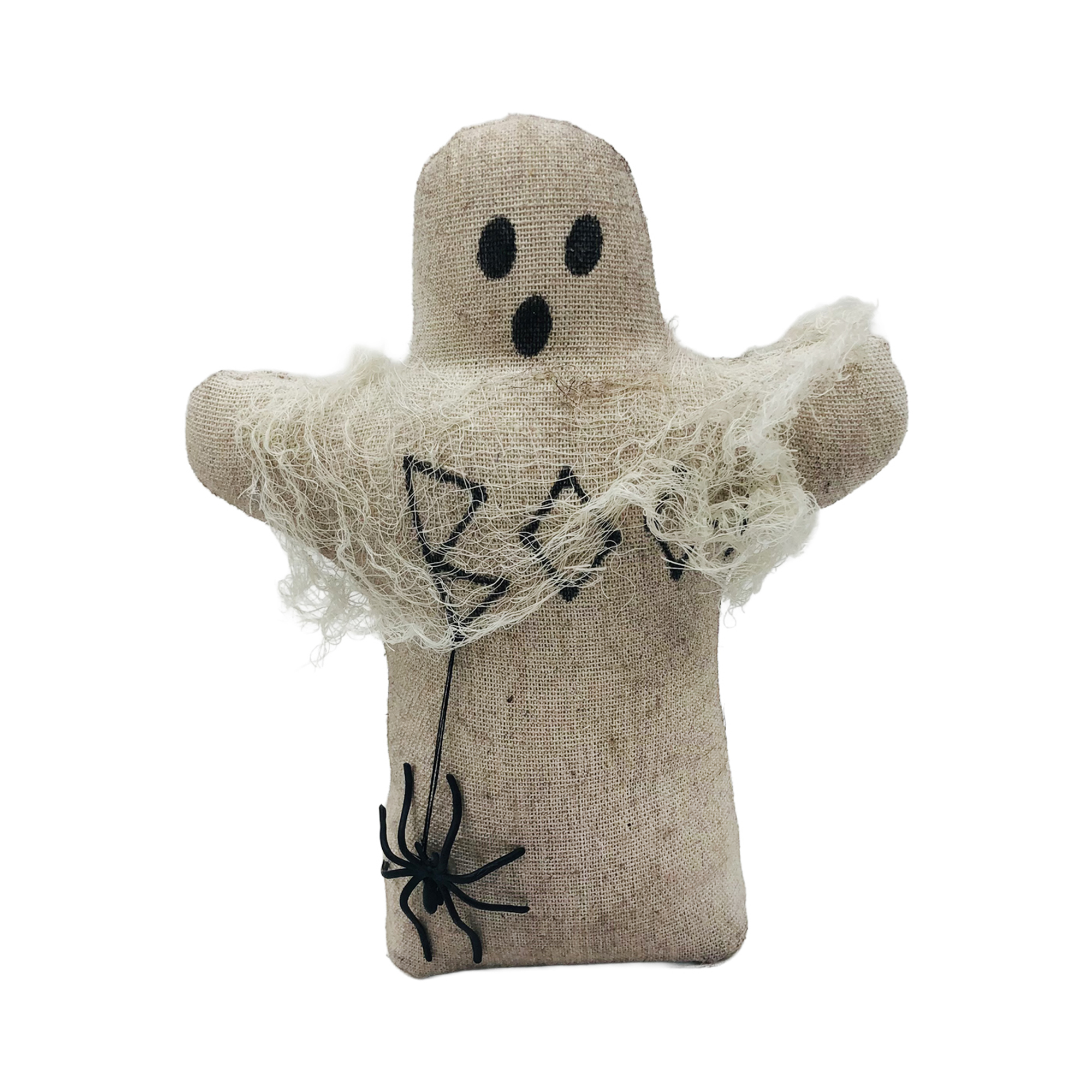 Embrace the spirit of Halloween with this charming ghostly guardian, handcrafted from natural burlap and imbued with a sense of seasonal coziness. Its simple charm and rustic appearance evoke memories of autumn evenings spent gathering with loved ones, offering a blend of whimsy and warmth to your holiday decorations.