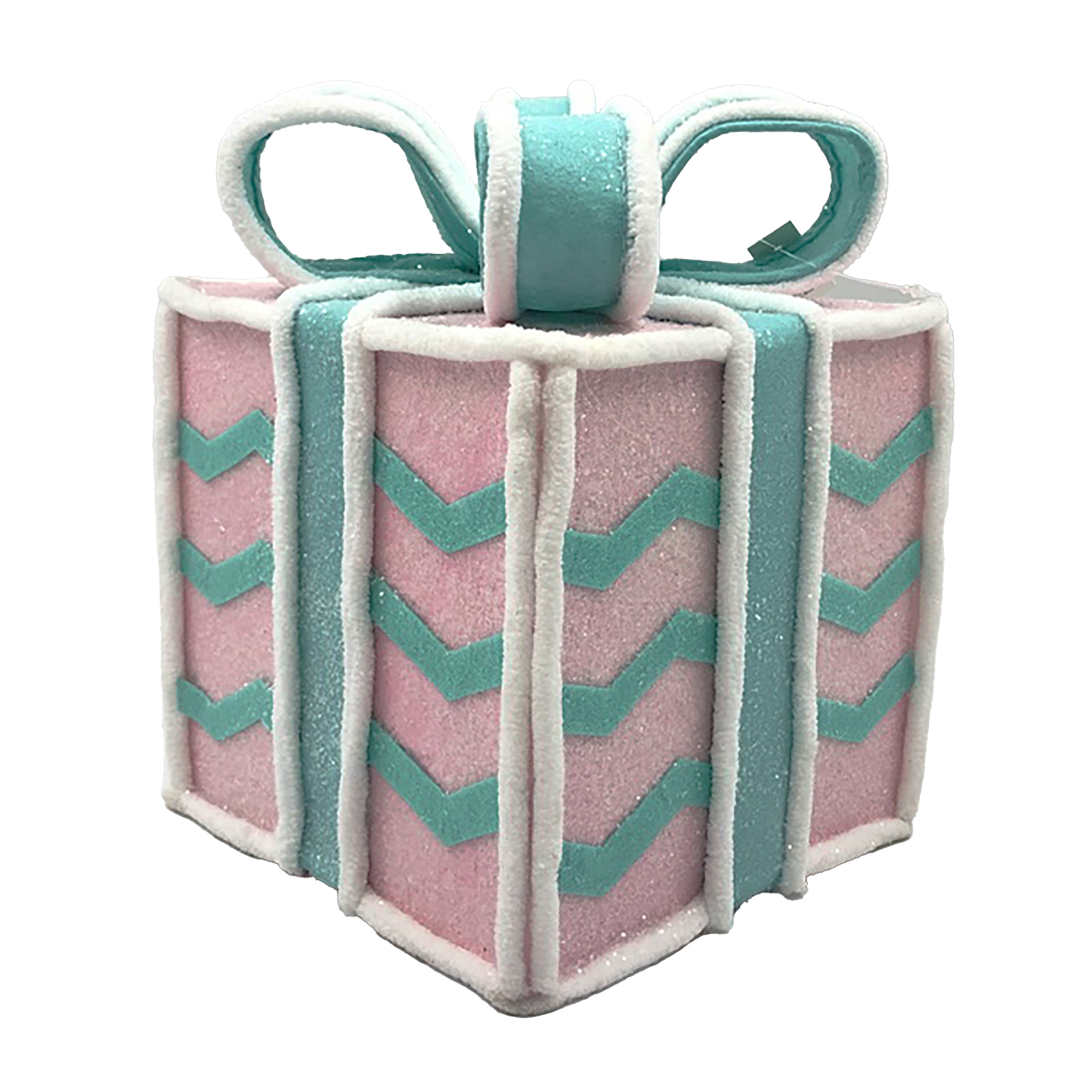 GIFT BOX CANDY CANE TABLE DECOR 6.5″x8.5″ PINK/LT. BLUE W/ FAUX FAUR TRIM & GLITTER