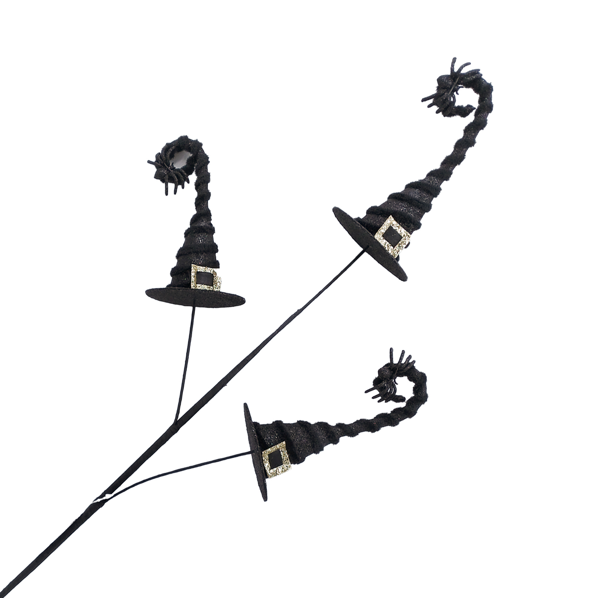 HALLOWEEN SPRAY WITCH HAT X 3 29″ BLACK W/ GLITTER