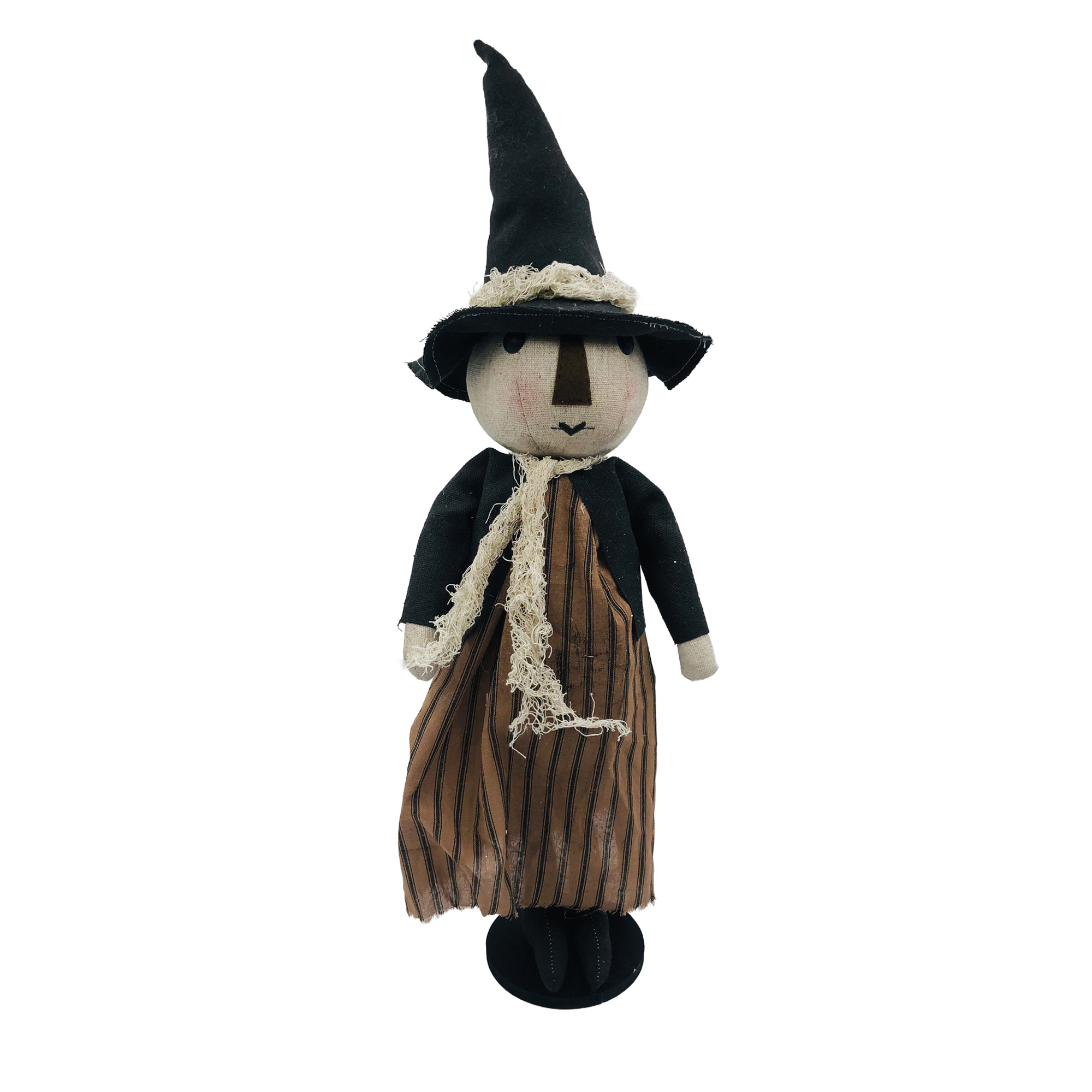 A charming addition to your holiday decor, this handcrafted witch doll brings the spirit of tradition and nostalgia to life. With her whimsical black hat and earthy brown skirt, she stands ready to enchant your home, evoking memories of cozy gatherings and storytelling around the fire.