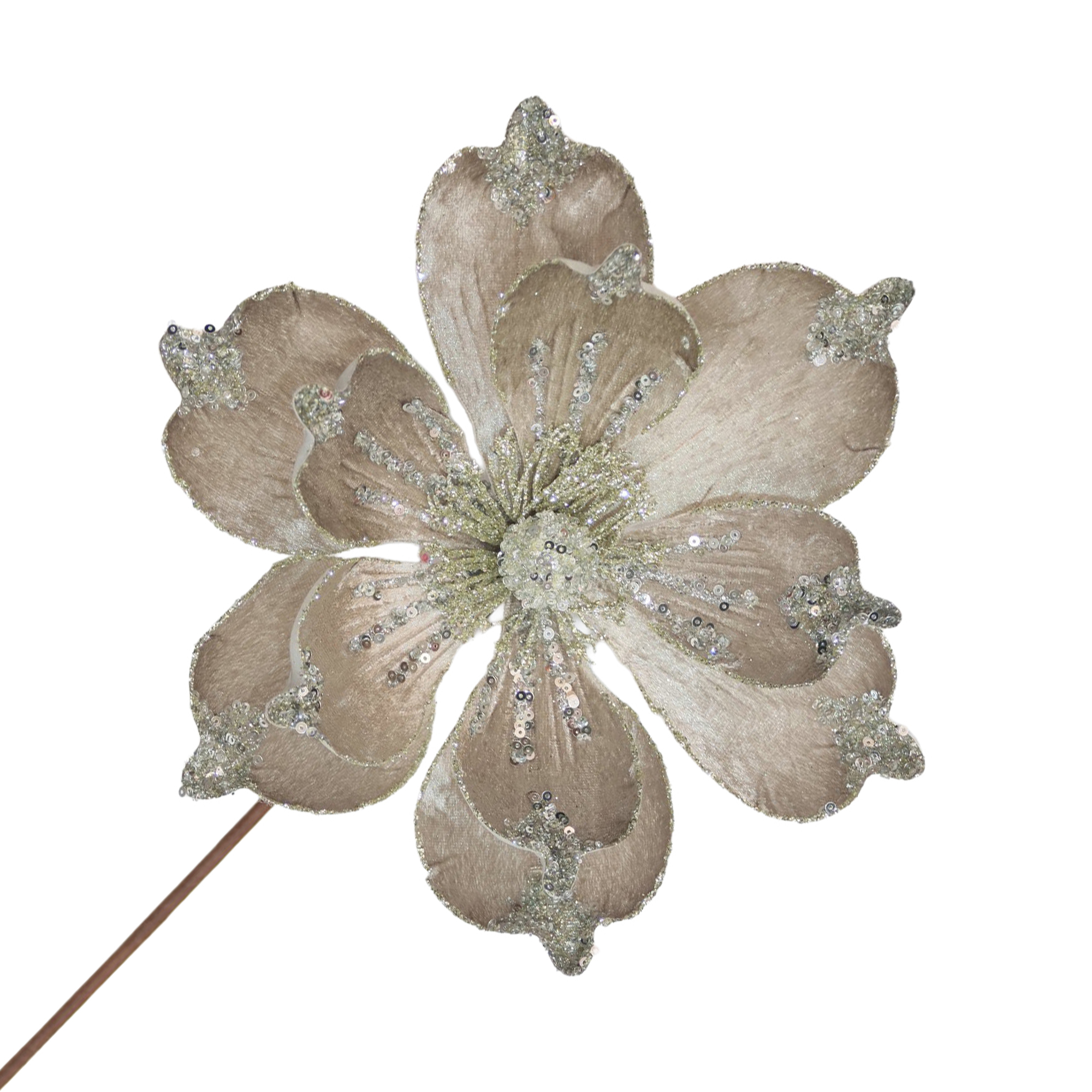 MAGNOLIA STEM VELVET 20″X9″ PLATINUM W/ GLITTER