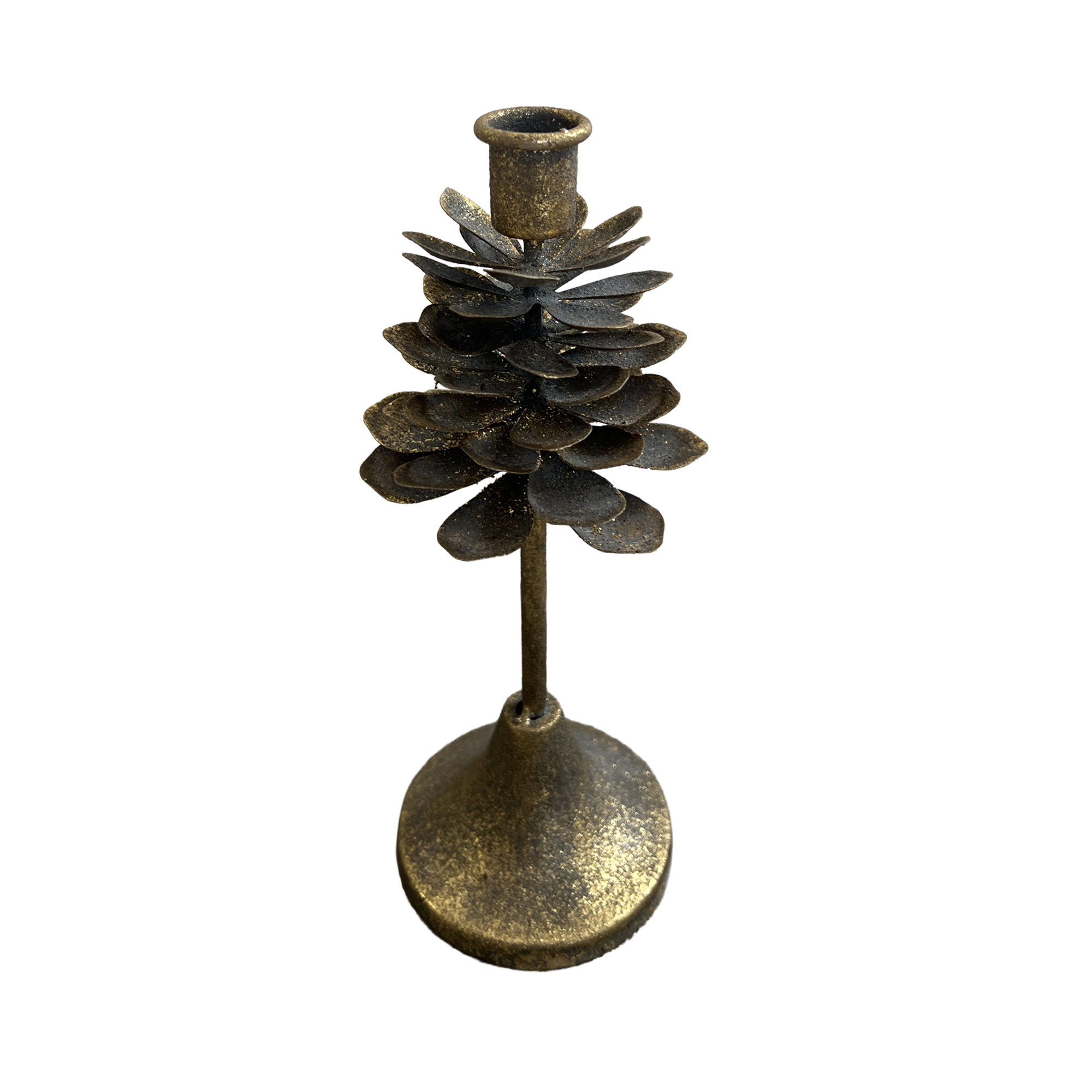 METAL PINE CONE TAPER CANDLE HOLDER 10.5″ RUSTIC COPPER BRONZE FINISHED