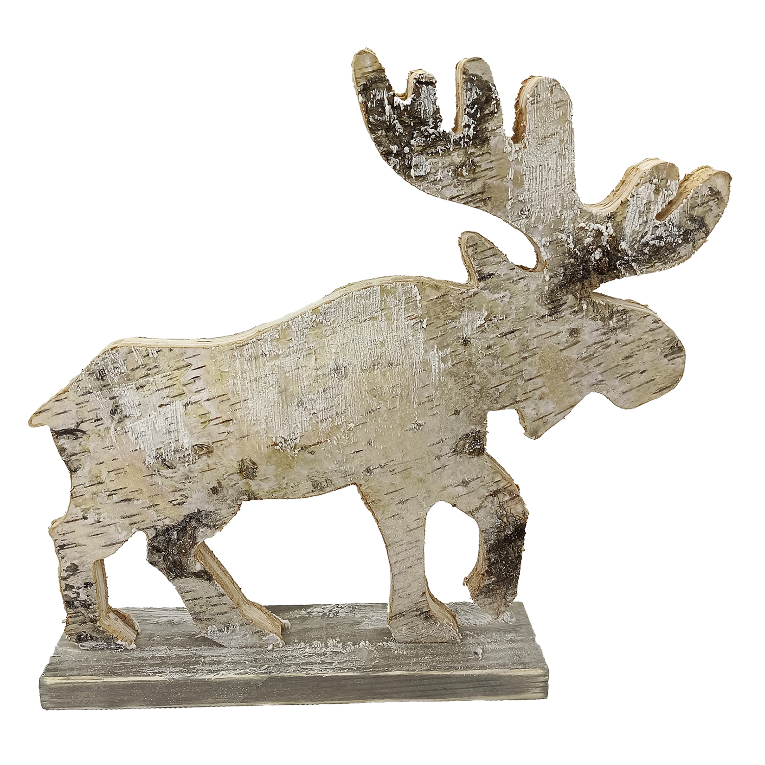 MOOSE WOODEN TABLE DECOR 11″x10.5″ FROSTED NATURAL/BIRCH LOOK