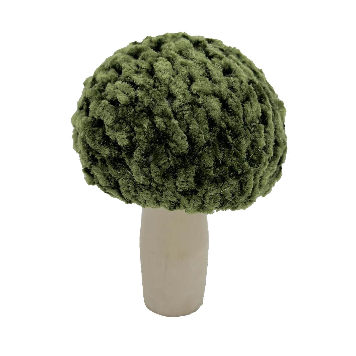 MUSHROOM WOODEN BODY|FABRIC CAP GREEN/NATURAL 3.5″ GLITTER/FROSTED