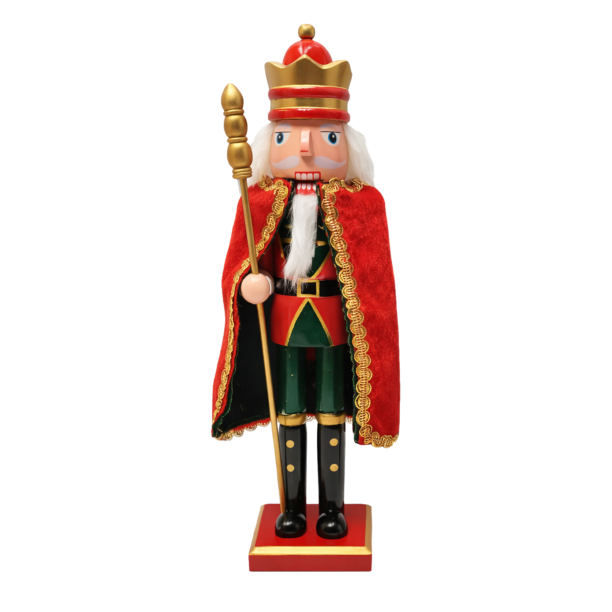 This exquisite Nutcracker King is a timeless representation of holiday cheer and tradition. Crafted from sustainable wood, he proudly wears a regal red cape adorned with golden trim, embodying the spirit of festive celebrations. With intricate hand-painted details and a classic pose, he serves as a cherished symbol of family gatherings and joyful memories during the Christmas season.