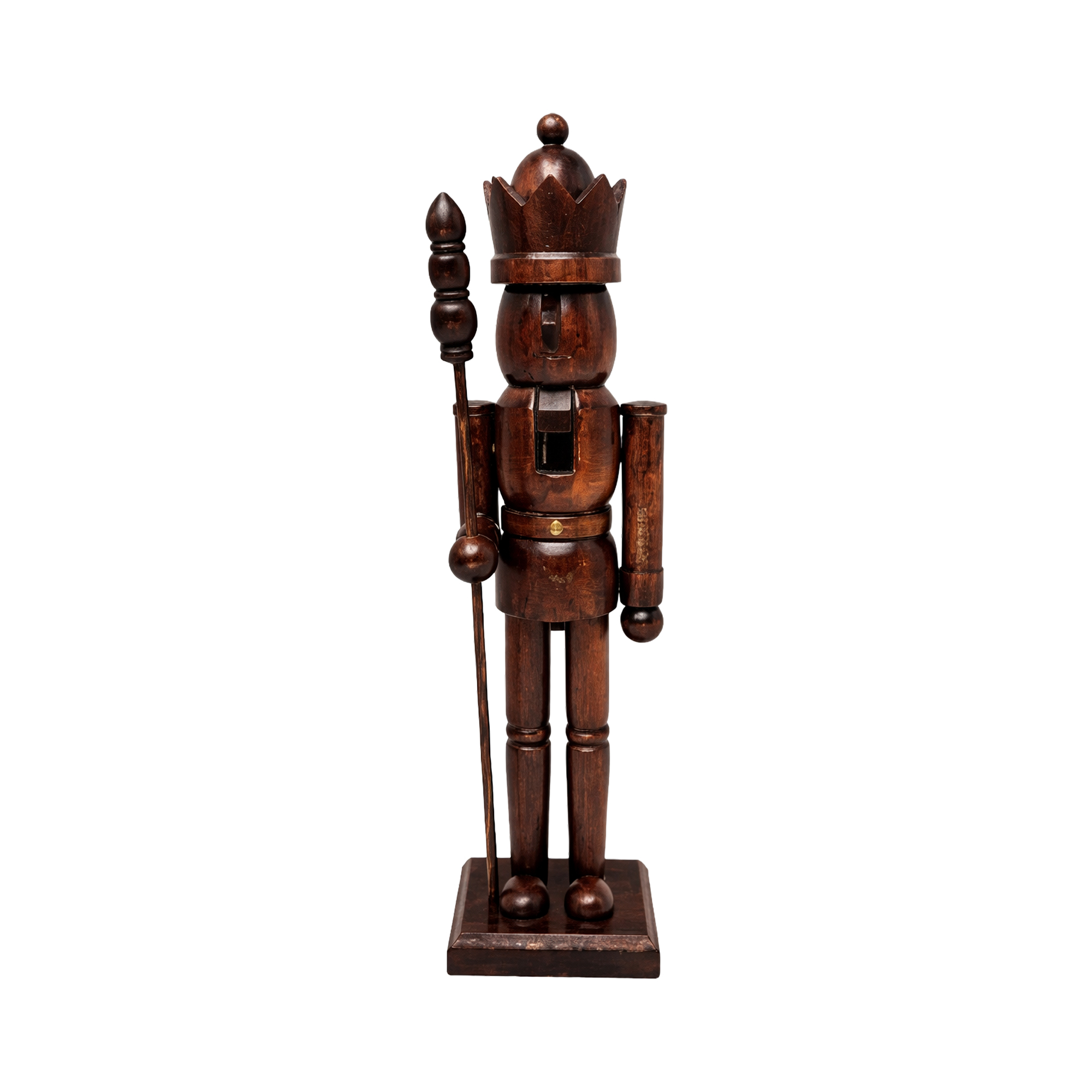 Delight in the nostalgic charm of this hand-carved Nutcracker King figurine, a timeless representation of holiday tradition. Crafted from quality wood and finished in rich hues, this piece exudes a sense of heritage that evokes memories of family gatherings and joyful celebrations. His regal crown and trusty staff add a refined touch, making him a perfect centerpiece for your festive decor.