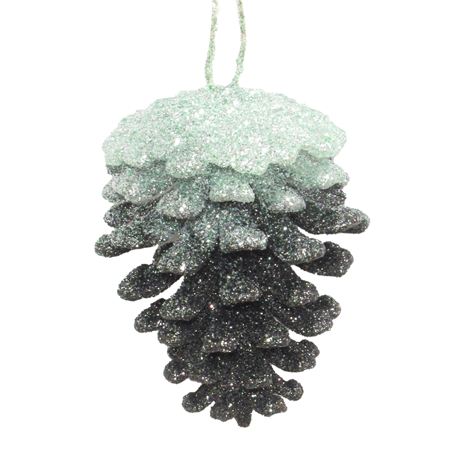 ORN MINT/DK FOREST GRN PINE CONE 2.75″ 3-D W/ GLTR.