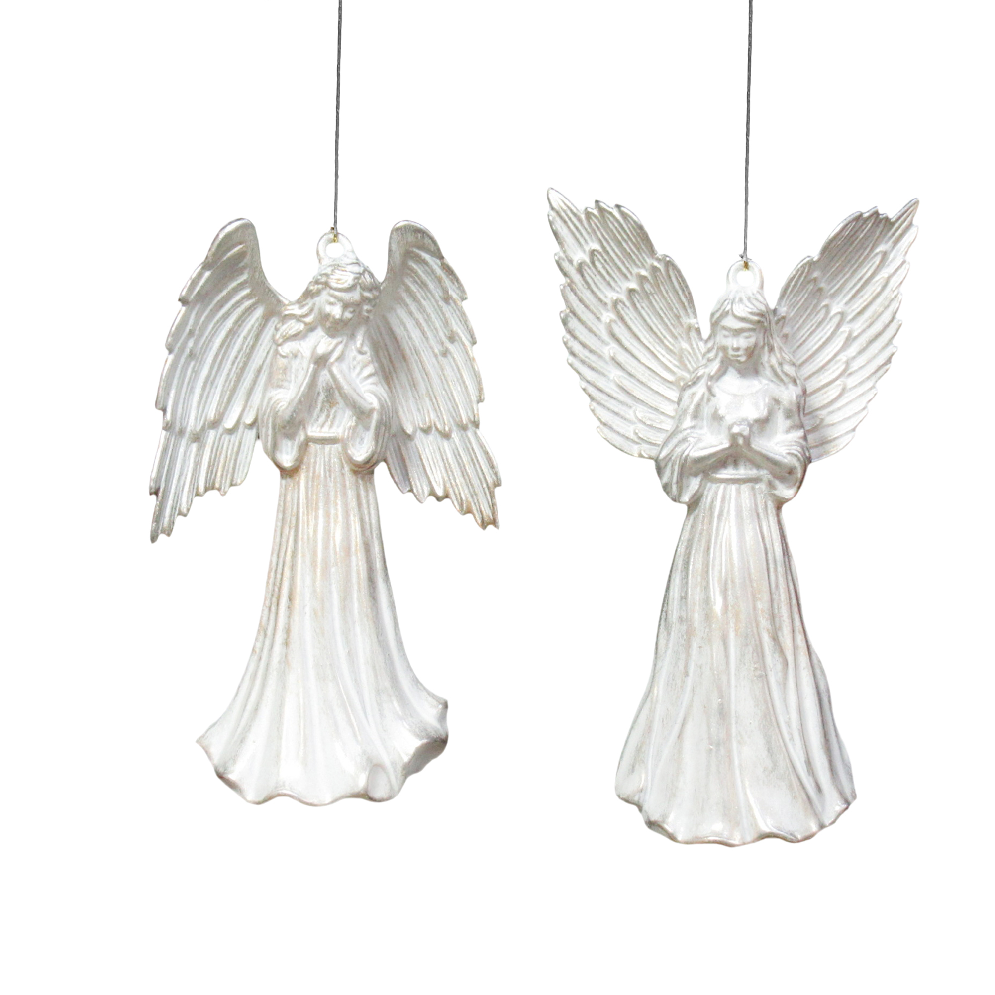 This charming ornament set captures the serene essence of holiday spirit with two beautifully crafted angels poised in prayer. Made from durable resin, each figure features delicately detailed wings and flowing gowns, evoking a sense of peace and nostalgia reminiscent of cherished holiday traditions.