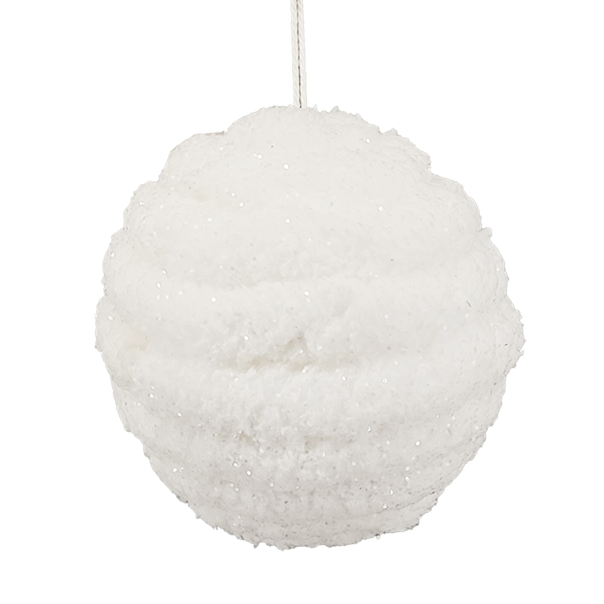 BALL FABRIC FAUX FUR 5″ WHITE RIBBED W/ GLITTER