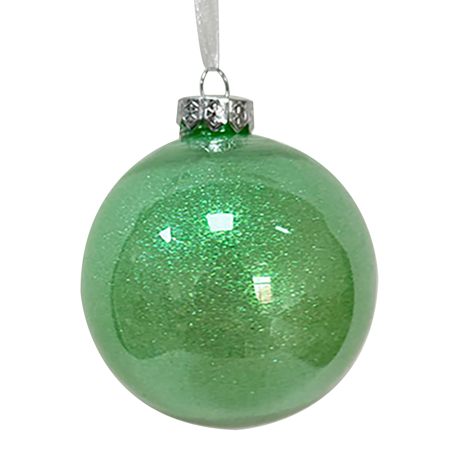 BALL DECOR GREEN 100MM CLEAR W/ INSIDE GLITTER