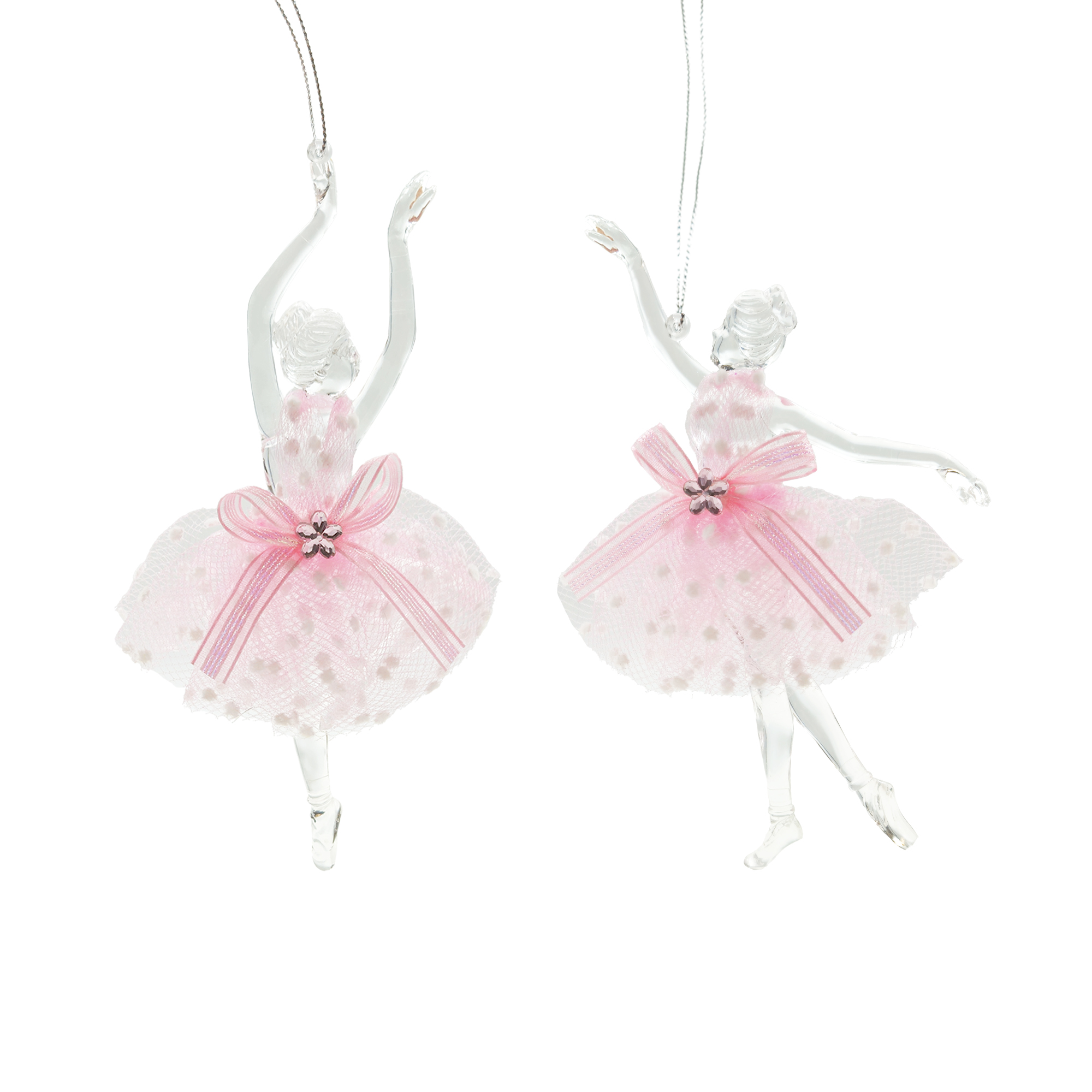 BALLERINA CLEAR W/PINK MESH SKIRT & RIBBON BOW 6.1″ W/JEWEL, 2/S