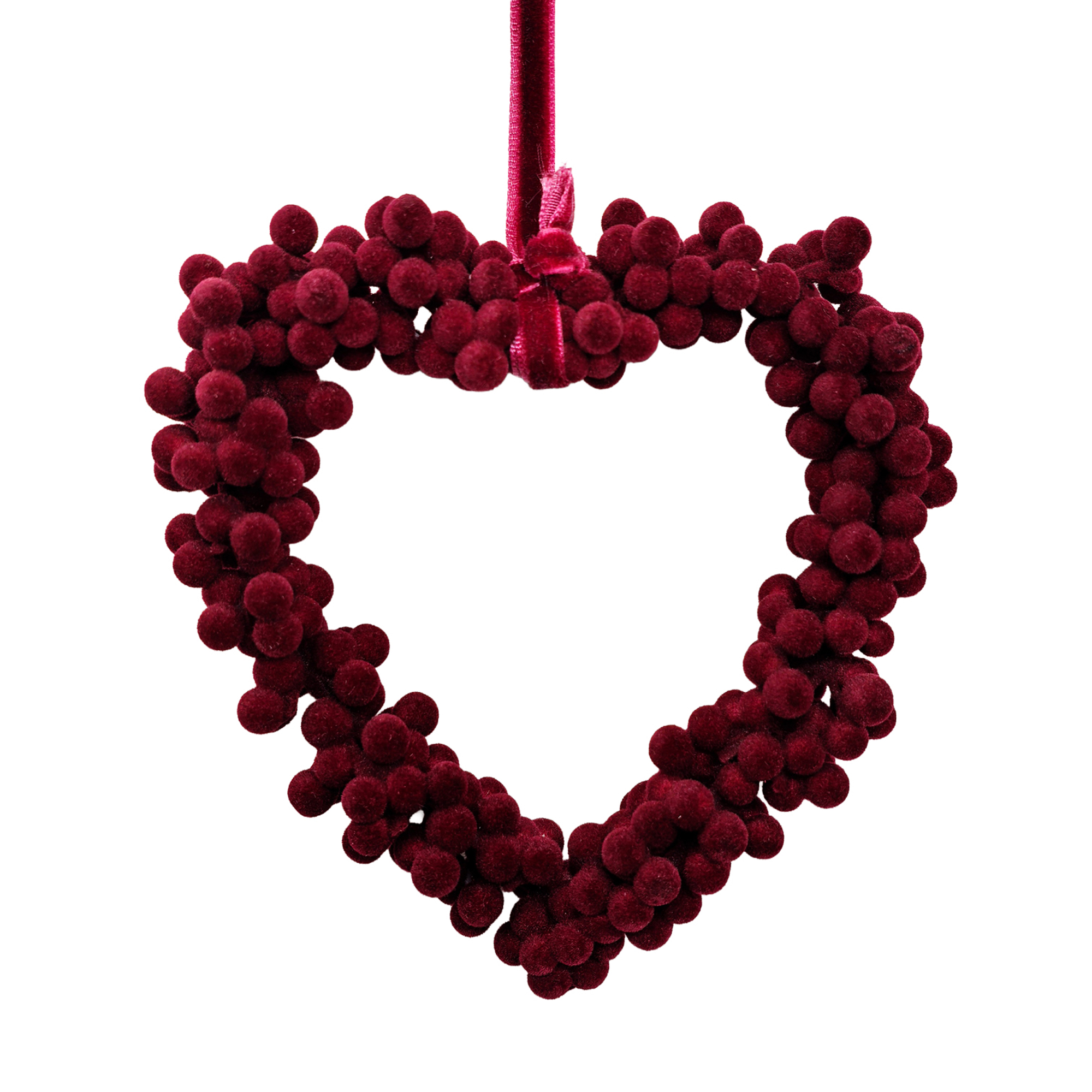 This charming heart-shaped adornment is crafted with soft burgundy velvet, evoking the warmth of cherished family gatherings during the festive season. The rich color and texture bring an inviting nostalgia, making it a lovely addition to your holiday celebrations, symbolizing love and togetherness.